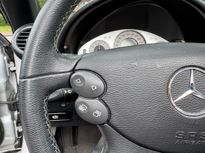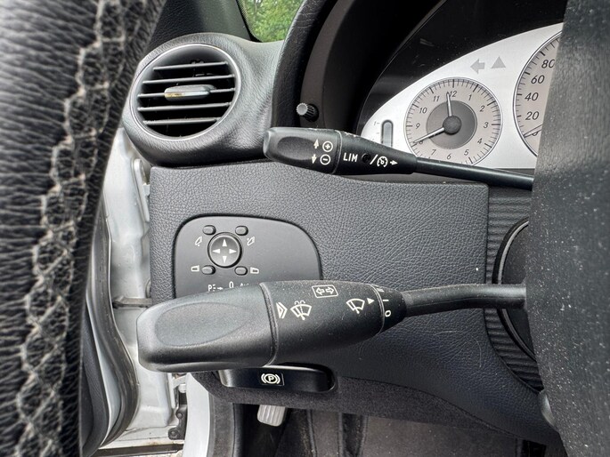 Automatische airconditioning verwarmt of koelt het interieur met een druk op de knop. Altijd twee handen aan het stuur, wel zo veilig en gemakkelijk. Ook daaraan is gedacht, met de audiobediening op het stuur. Boem is ho? Niet bij deze Mercedes-Benz CLK-klasse Cabrio. De piepjes van de parkeersensoren waarschuwen u op tijd voor obstakels. Interval, normaal of high-speed? Bij iedere neerslag reageert de regensensor altijd op gepaste wijze! Stel de cruise control in op de gewenste snelheid en u rijdt comfortabel en zuinig. Extra opties op deze auto zijn: buitentemperatuurmeter, lederen stuur en versnellingspook, centrale deurvergrendeling met afstandsbediening en boordcomputer.