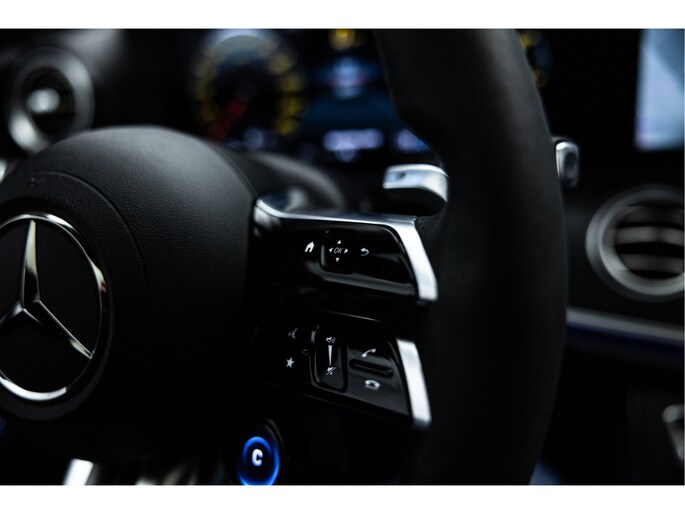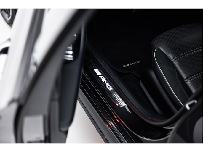 Grafietgrijs metallic van kleur met een uitgebreid AMG Nightpakket, gave 20" Inch kruis gesmede AMG velgen en exclusief lederen bekleding met subtiele details.