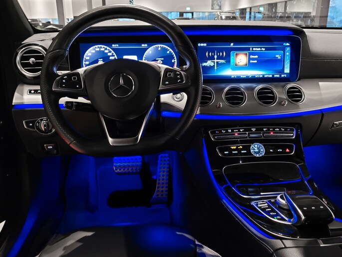 Uitgevoerd in de sportieve AMG-lijn straalt deze E-Klasse pure klasse en dynamiek uit. De krachtige 350 d zescilinder dieselmotor levert moeiteloze trekkracht en souplesse, terwijl de luchtvering garant staat voor een ongeëvenaard rijcomfort – of u nu over de snelweg glijdt of ontspannen door de stad rijdt.