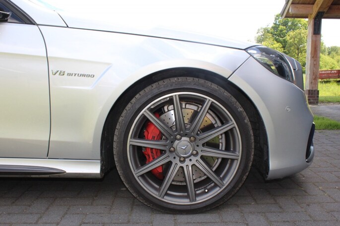 Bomvolle E63 S Estate AMG in excellente conditie! Voorzien van alle gewenste opties, onder meer, 4Matic, carbon styling pakket binnen en buiten, Distronic plus, panorama dak enz enz. (Zie optielijst). De kleur irridium silver, gecombineerd met het glazen dak en de mat grijze 19 inch AMG velgen geven de auto een sportieve en representatieve uitstraling. Niets is te gek voor deze AMG, ultieme prestaties, ruimte, uitstraling, kwaliteit en superieure rijeigenschappen! Met een acceleratie 0-100 van 3.7 seconden en een koppel van 800 NM is elke rit een feest. Deze wolf in schaapskleren is technisch nagekeken, en up-to-date. Voorzien van EU audio, EU achterlichten, nieuwe MO banden. Heeft bovendien een uitgebreide lakbehandeling ondergaan. Is voorzien van een NL kenteken met APK. EU Comand systeem en navigatie.
