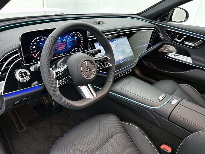 Laat je niets wijsmaken, deze Mercedes-Benz E-klasse biedt alles wat jij van een auto verlangt. Hou je van een sportieve, dynamische uitstraling? Dan komt de AMG Line Exterieur als geroepen. Het is een nieuwe auto, hij is nu uit voorraad leverbaar. Elektrisch rijden: zuinig, goedkoop en schoon. Maar soms net wat beperkt als het gaat om afstand. Daarom heeft deze hybride Mercedes-Benz E-klasse zowel een verbrandingsmotor als een elektromotor. Als dat geen perfecte combi is! Een fraai lederen interieur, dat in daglicht baadt dankzij het elektrisch bediende glazen panorama dak. En voor 'handsfree' in- en uitladen vind je aan de achterzijde de elektrisch bedienbare achterklep. Neem plaats op de comfortabele stoelen. Dankzij de elektrische bediening en het geheugen is het eenvoudig om hierin de beste zitpositie te vinden. Als het buiten koud wordt, voelt zo'n verwarmd stuurwiel heerlijk aan. Met matrix LED-verlichting rijd je eigenlijk altijd met groot licht, dus maximaal zicht. Toch is verblinden er niet bij, want het systeem regelt de verlichting zo dat tegenliggers er geen last van hebben. Bij de zeer complete uitrusting van deze auto behoren ook 20 inch lichtmetalen velgen, AMG Line Exterieur, adaptief dempingsysteem, warmtewerend glas, in delen neerklapbare achterbank en LED-achterlichten.