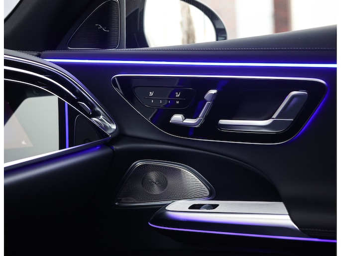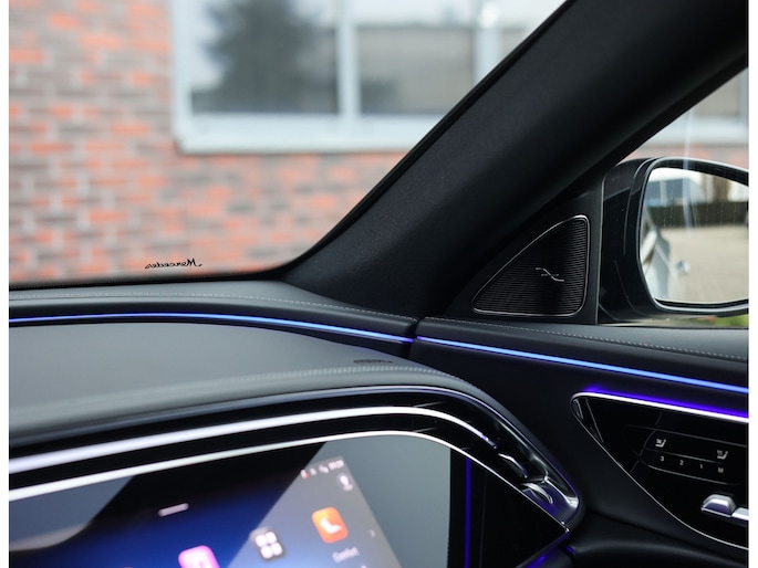 Binnenin vindt u een luxueuze omgeving waarin elk detail klopt. Het zwarte nappaleder op de stoelen en het dashboard, de hoogwaardige houtafwerking en de sfeerverlichting creëren een ambiance die u zowel overdag als ’s avonds weet te verrassen. Voorstoelen met verwarming en ventilatie, verwarmde achterstoelen en een verwarmd AMG stuurwiel zorgen ervoor dat u altijd in comfort onderweg bent. Daarnaast geniet u optimaal van uw favoriete muziek met het Burmester geluidssysteem en heeft uw passagier een eigen display voor vermaak onderweg.