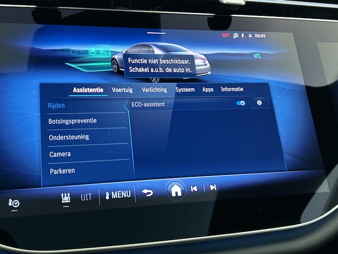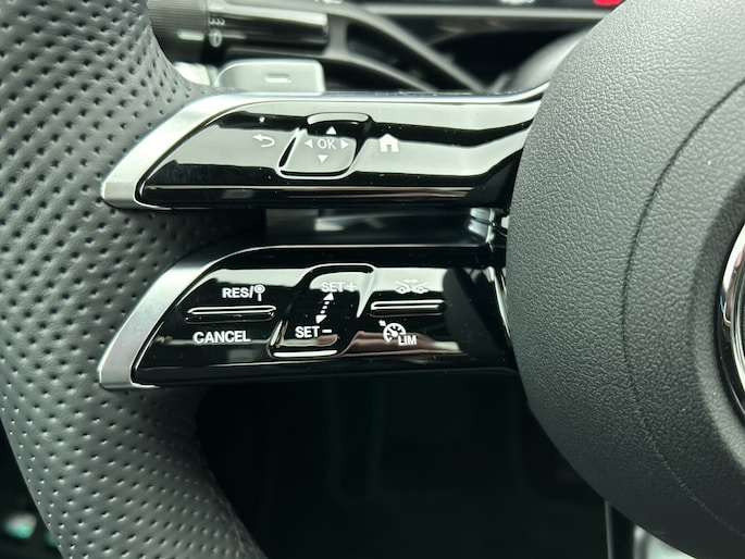 Tijdens de rit wordt je als bestuurder ondersteund door verschillende systemen die de weg en jouw omgeving in de gaten houden. De camera van de verkeersborddetectie herkent verschillende soorten verkeersborden en toont deze op het dashboard. Het Lane-keeping systeem let constant op en waarschuwt of corrigeert als je onoplettend over de lijnen van de rijstrook gaat. Rijdt een ander voertuig in jouw dode hoek dan waarschuwt het systeem met een signaal. In deze Mercedes-Benz vinden we verder een forward collision warning system, vermoeidheidsherkenning, autonoom remsysteem en bandenspanningcontrolesysteem.