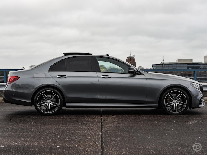 Mercedes-Benz E-klasse 220 d AMG Panoramadak Soft-Close Luchtvering Burmester HUD Standkachel Widescreen 360 Camera Distronic Trekhaak Multibeam LED Apple CarPlay Android Auto