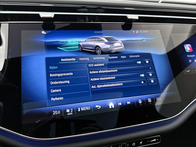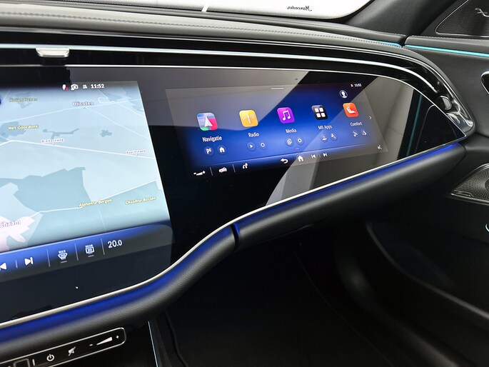 In één oogopslag heb je alle benodigde functies onderweg in beeld, dankzij het slim ingedeelde digitale dashboard. De vier camera's die samen de 360 graden camera vormen, bieden je de mogelijkheid om obstakels in elke richting te zien. Adaptive cruise control houdt de ingestelde snelheid vast en houdt afstand tot het voertuig voor je. Het infotainmentsysteem bedien je met je vingers of met je stem, met dank aan de geïntegreerde stembediening. Ingericht op Connected Services, voor een nog veiligere en comfortabelere rit. Deze Mercedes-Benz is voorzien van full map navigatiesysteem, WIFI-hotspot, achteropkomend verkeer waarschuwing, electronic climate control, draadloos opladen en DAB ontvangst.