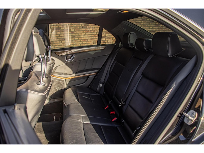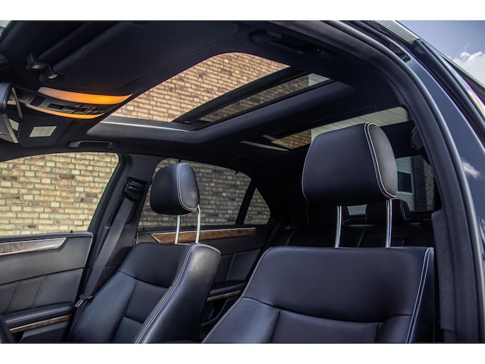 De auto is uitgevoerd in een klassieke zwarte lak, wat perfect past bij het stijlvolle karakter van de E-klasse. De AMG styling bumpers en lichtmetalen velgen geven het geheel een nette en sportieve uitstraling. Dankzij het panoramadak oogt de auto niet alleen luxueus, maar geniet je ook van extra lichtinval en een ruimtelijk gevoel tijdens het rijden.