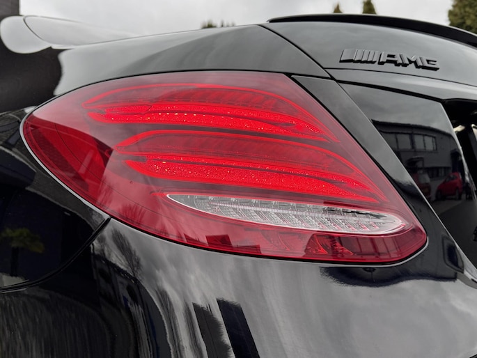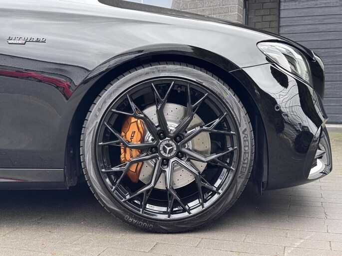 Puntgave Mercedes E-Klasse 43 AMG 4Matic in de diep zwarte kleur Baltic Black