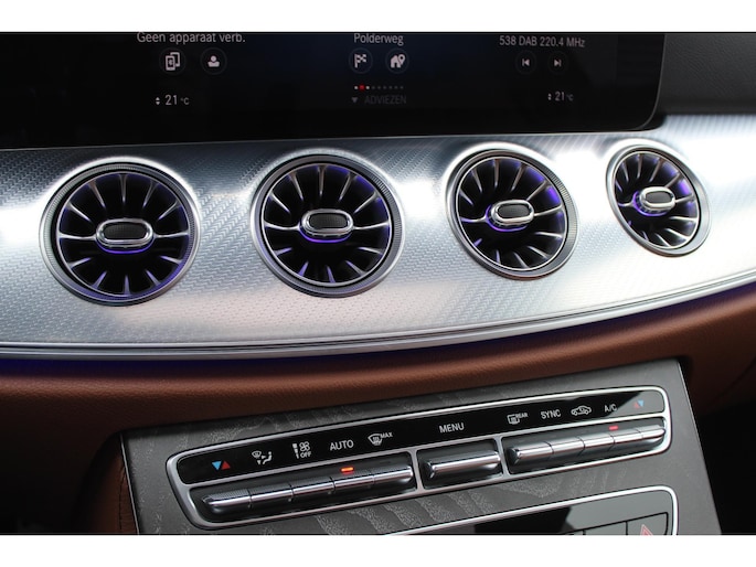 Deze origineel Nederlands geleverde Mercedes E-klasse Coupé 200 is zeer goed onderhouden en in nette staat. Deze sportieve Coupe is uitgerust met oa AMG line interieur en exterieur, glazen panoramadak, Afstandspilot plus (DISTRONIC PLUS), Binnen- en buitenspiegel automatisch dimmend, Memorypakket (bestuurdersstoel, stuurkolom en spiegel), Navigatie vanaf harde schijf, Automatische negentraps transmissie, head-up display, 360°-camera, Interieurhemelbekleding stof zwart, DAB, Diefstal-/inbraakalarminstallatie, Koplampen led dynamisch, Burmester Surround Audio, Grafietgrijs - metalliclak, Glas donker getint, Handsfree access, Stoelverwarming voor bestuurder en bijrijder, KEYLESS GO, Sfeerverlichting premium, Draadloos telefoon opladen voor, Luchtkwaliteitspakket, Nightpakket, 20 inch multispaaks AMG-velgen Dashboard en bovenzijde portieren met leder bekleed, Augmented Reality-video, Instaplijsten verlicht, Climat Control en Bluetooth.