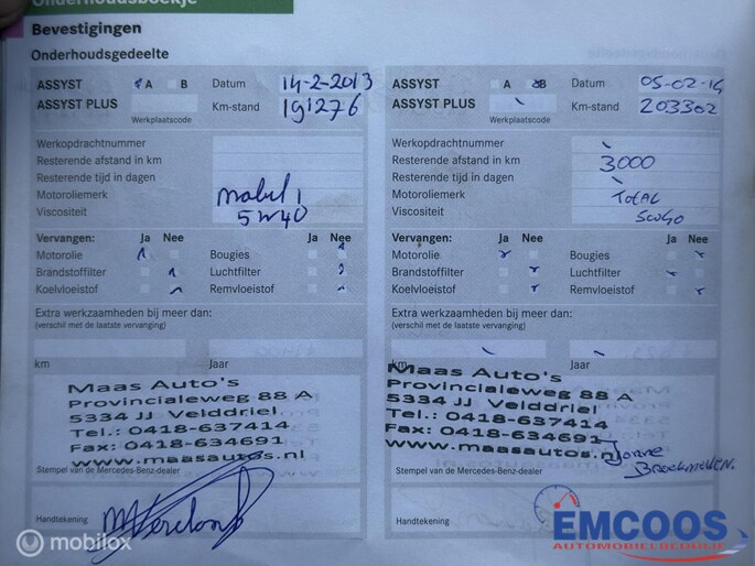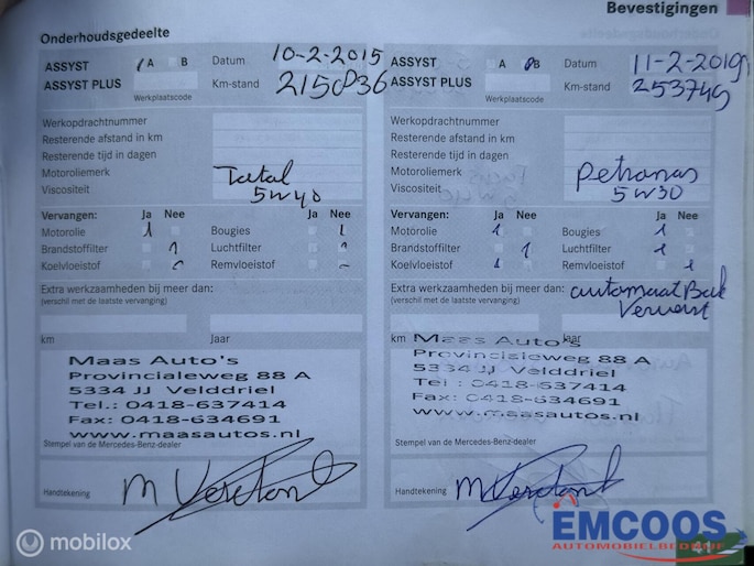 - Onderhoudshistorie aanwezig: Ja