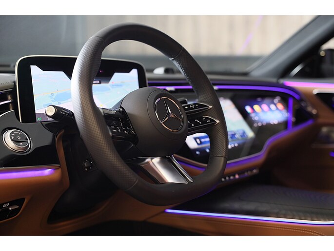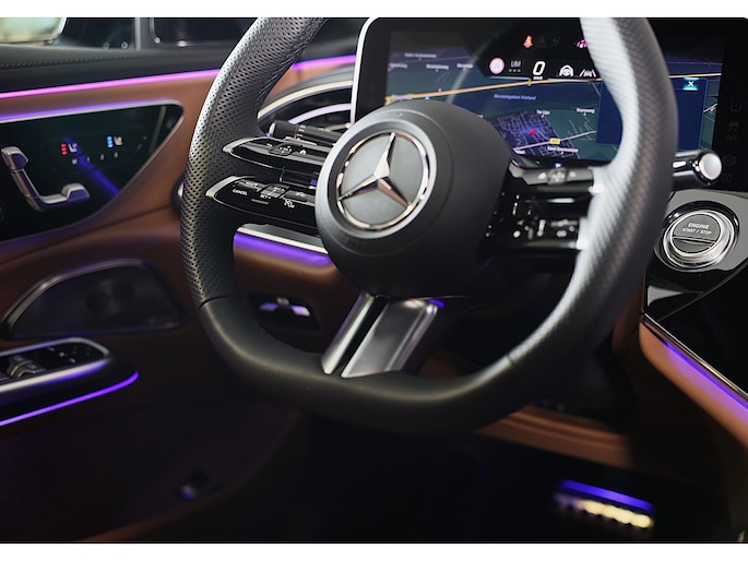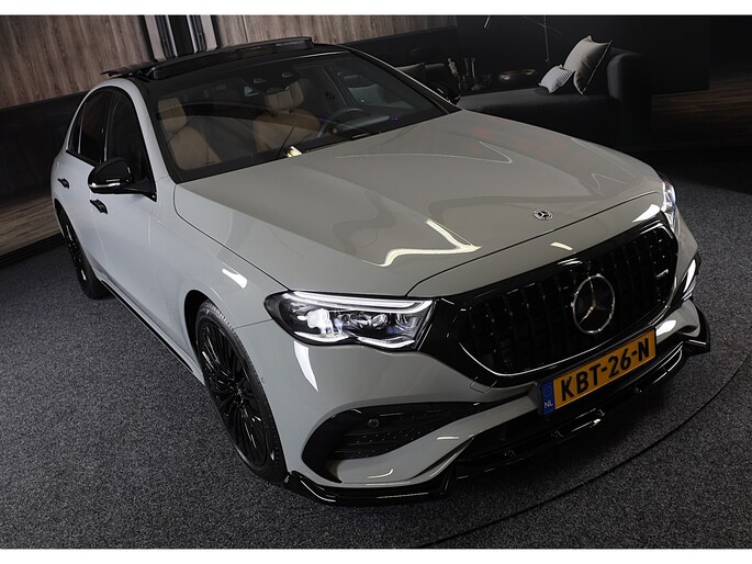 De Mercedes-Benz E-klasse combineert comfort met een uitstekende wegligging en dynamische rijkwaliteiten. De AMG Line Exterieur geeft deze auto een bijzonder karakter en staat voor sportiviteit en exclusiviteit. Met een viercilinder motor en een automatische transmissie beschikt deze Mercedes-Benz over uitstekende prestaties. Dankzij de luchtvering hebben alle vier de wielen optimaal contact met de weg. En ondertussen elimineert ze het effect van oneffenheden. De actieve veiligheid wordt verder vergroot dankzij vierwielaandrijving. Deze Mercedes-Benz is voorzien van een mooie en comfortabele lederen bekleding. In de verwarmbare voorstoelen zitten is elke keer een welkom gevoel. De massagefunctie doet daar nog een schepje bovenop. Neem plaats op de comfortabele stoelen. Dankzij de elektrische bediening en het geheugen is het eenvoudig om hierin de beste zitpositie te vinden. Een heerlijk zonnetje, of indrukwekkende wolkenpartijen? Bekijk ze onbelemmerd door het elektrisch bediende glazen panoramadak. Tot de uitrusting behoren ook open dak, verwarmd stuurwiel, een elektrisch bedienbare achterklep, 20 inch lichtmetalen velgen, LED koplampen en AMG Line Exterieur.