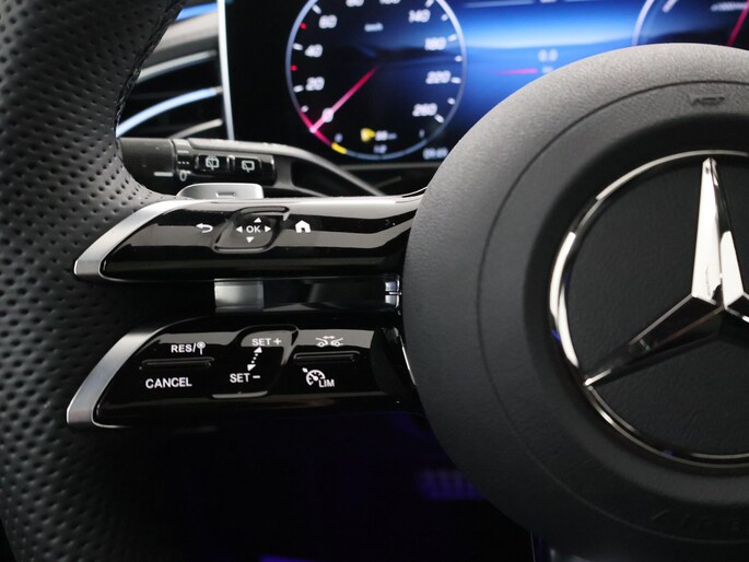 Snelheid, brandstofinfo, noem maar op. Het digitale dashboard houdt u permanent op de hoogte. Goed en overzichtelijk. Met de 360 graden camera op deze auto wordt het rijden een heel stuk veiliger, dankzij het optimale zicht dat het biedt. Adaptive cruise control is een comfortabele en veilige optie. Het systeem reguleert de snelheid en houdt automatisch afstand tot uw voorligger. De meest gebruikte voertuigfuncties laten zich met behulp van uw stem bedienen. De auto is voorzien van een trekhaak en is een uitstekende caravantrekker. U bent in deze Mercedes-Benz ook voorzien van premium audiosysteem, navigatiesysteem met harde schijf, WIFI-hotspot, achteropkomend verkeer waarschuwing, electronic climate control en sportstuur met schakelpaddels.