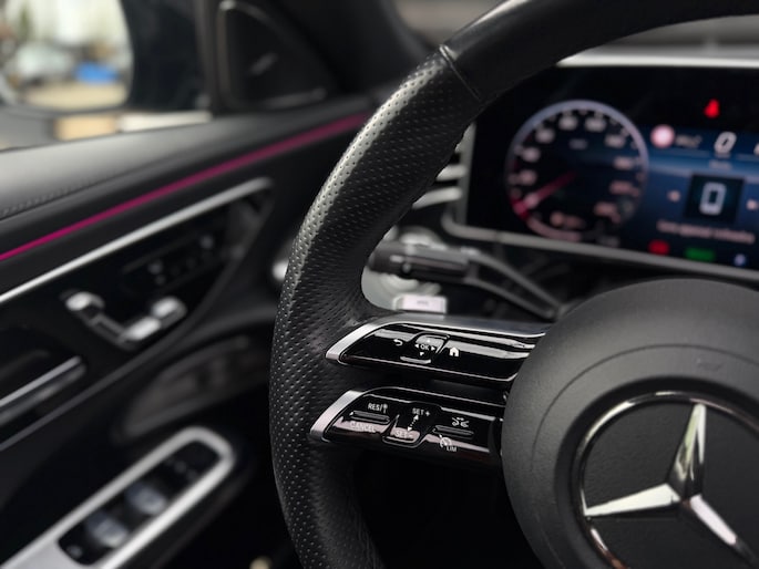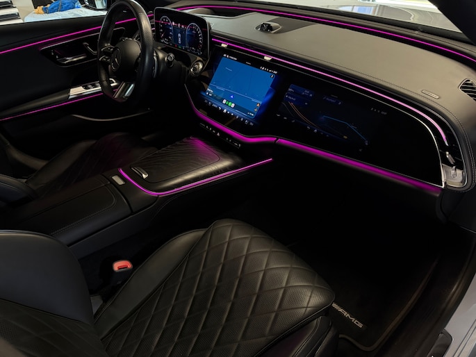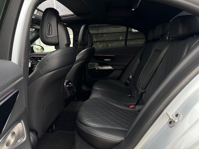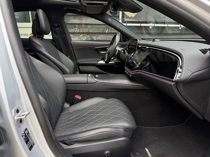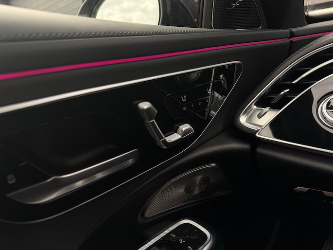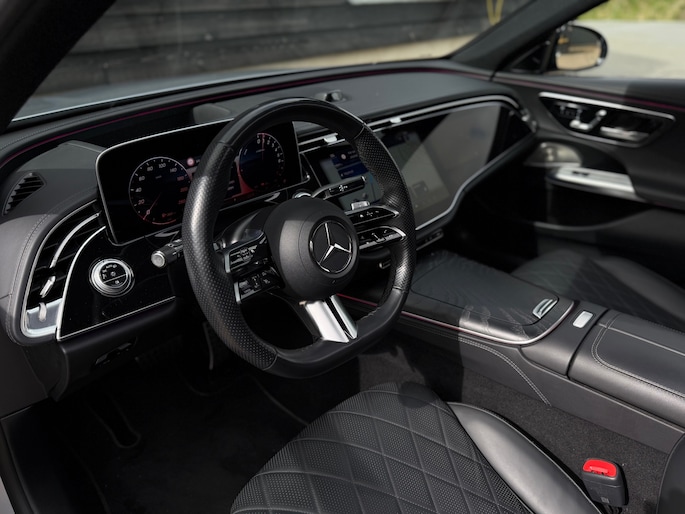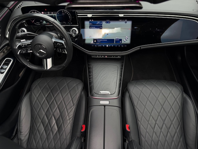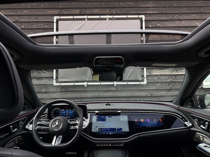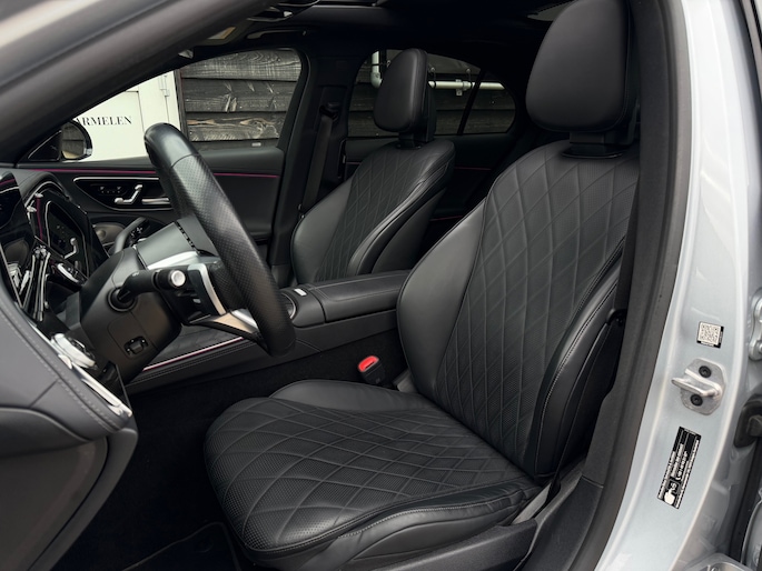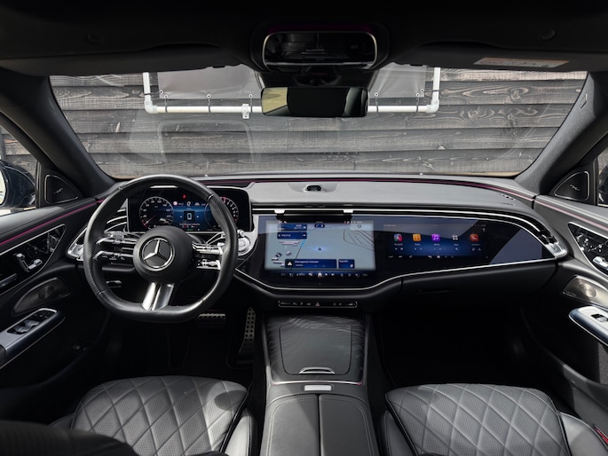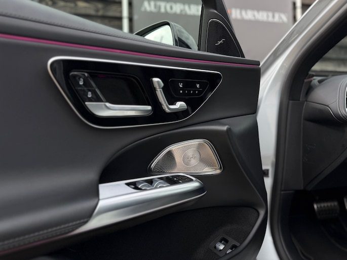 Deze E-Klasse is voorzien van een panoramadak dat zorgt voor een ruimtelijk en licht interieur, volledig lederen stoelen die niet alleen luxe ogen maar ook maximaal comfort bieden, inclusief stoelverwarming en stoelventilatie voor zowel warme als koude dagen. Het hoogwaardige Burmester geluidssysteem zorgt voor een indrukwekkende geluidsbeleving, waarbij zelfs speakers in de stoelen zijn geïntegreerd voor een extra dimensie tijdens het rijden.
