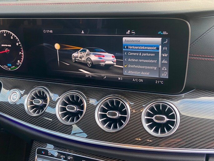 DEALER ONDERHOUDEN ONDERHOUDSHISTORIE BEKEND Mooie Mercedes E 53 BI turbo Cabriolet. Voorzien van 435PK!. Xenon, Lederen bekleding, Stoel verwarming, Nek verwarming, PDC, Navigatie, Cruise control. Alle boekjes en sleutels aanwezig Auto's als deze Mercedes-Benz E-klasse Cabrio bieden tegelijk rijdynamiek, comfort en degelijkheid. Met een zescilinder motor en een automatische transmissie beschikt deze Mercedes-Benz over uitstekende prestaties. Ouderwets vakmanschap en natuurlijke materialen komen samen in het lederen interieur. De stoelen zijn verwarmd en bieden ook in winterse kou een comfortabele zit. U wordt in deze auto ook getrakteerd op 20 inch lichtmetalen velgen, verstelbare lendensteunen, metallic lak, elektrisch bedienbare ramen voor en elektrisch bedienbare en verwarmde buitenspiegels. Gemakkelijk en veilig is bediening voor het audiosysteem met knoppen op het stuur. Met electronic climate control hoeft u alleen de gewenste temperatuur in te stellen. Het systeem doet de rest. Om de veiligheid onderweg te verhogen, heeft deze Mercedes-Benz zowel een automatisch inschakelbare verlichting als een regensensor aan boord, zodat hij zelf de verlichting en de ruitenwissers kan inschakelen. Ook is de auto voorzien van parkeersensoren voor en achter. Deze Mercedes-Benz is bovendien voorzien van cruise control. Dus comfortabel en zuinig rijden verzekerd! Met verstelbaar stuur en centrale deurvergrendeling met afstandsbediening is deze auto helemaal compleet. De auto is voorzien van een trekhaak en is een uitstekende caravantrekker. Pragmatisch en veilig als deze auto is, beschikt hij over diverse veiligheidssystemen. Brake assist verhoogt de remdruk in een noodsituatie zodat u sneller stil staat. Nooit meer gedoe met de hellingproef. Deze auto heeft hill hold control, een automatische handremfunctie voor steile wegen.