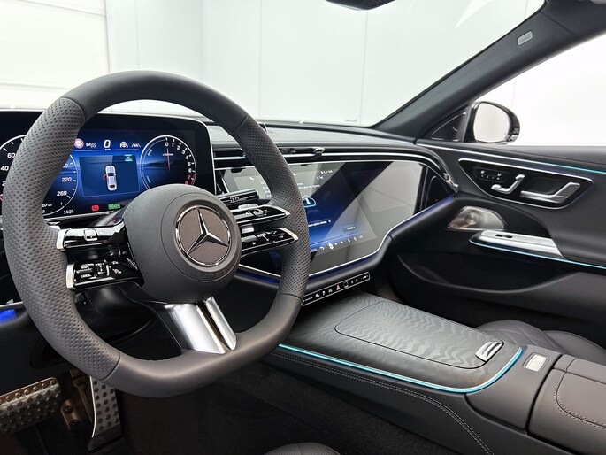 Een auto als de Mercedes-Benz E-klasse biedt een dynamiek en comfort die typerend zijn voor de producten van de Duitse autofabrikanten. Met de AMG Line Exterieur laat dit model zich van zijn meest dynamische kant zien. Dit is een nieuwe auto, hij is nu direct leverbaar. De krachtige motor geeft deze Mercedes-Benz uitstekende prestaties. Daglicht valt vrij binnen door het elektrisch bediende glazen panorama dak. Wat ook met één klik opent, is de elektrisch bedienbare achterklep. Neem plaats op de comfortabele stoelen. Dankzij de elektrische bediening en het geheugen is het eenvoudig om hierin de beste zitpositie te vinden. Constante rijhoogte, optimaal comfort, perfecte wegligging... de luchtvering zorgt ervoor! De comfortstoelen voorin doen er nog een schepje bovenop. Een verwarmd stuurwiel overbodige luxe? Wacht maar tot het kouder wordt! De koplampen zijn voorzien van matrix LED-verlichting waarmee je aanzienlijk verder kan kijken in het donker. Het systeem past zelf de lichtstraal aan op het moment tegenliggers verblind kunnen worden. In deze Mercedes-Benz profiteer jij onder andere ook van: 20 inch lichtmetalen velgen, AMG Line Exterieur, adaptief dempingsysteem, warmtewerend glas, in delen neerklapbare achterbank en LED-achterlichten.