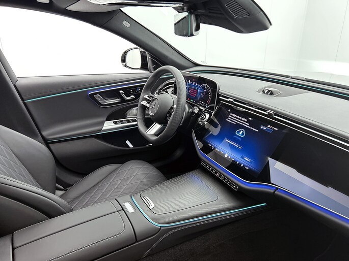 De intelligente veiligheidssystemen in deze auto waken continu over jouw veiligheid. De actuele snelheidslimiet, een inhaalverbod en andere verkeersborden; de verkeersborddetectie ondersteunt je tijdens elke rit. Deze Mercedes-Benz E-klasse is ook behulpzaam als het gaat om een rechte koers. Het Lane-keeping systeem signaleert en corrigeert als je onbedoeld de rijstrooklijnen dreigt te overschrijden. De actieve dodehoekdetectie draagt bij aan jouw eigen veiligheid en die van je medeweggebruikers. De auto is ook uitgerust met forward collision warning system, vermoeidheidsherkenning, autonoom remsysteem en bandenspanningcontrolesysteem.