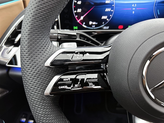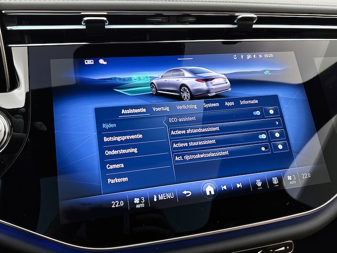 De Mercedes-Benz E-klasse is ook voorzien van ADAS. Deze Advanced Driver Assistence Systems fungeren als extra ogen en oren: ze houden voor jou de weg in de gaten en grijpen in wanneer dat nodig is. Ogen op de weg en toch alle dashboardinfo in beeld? Daar zorgt de head-up display voor! Belangrijk voor jouw veiligheid en die van jouw passagiers is de verkeersbord-detectie in deze auto. Het Lane-keeping systeem garandeert dat je je niet onverhoeds buiten de lijnen van de rijstrook begeeft. De veiligheid van deze auto wordt verder verhoogd door dodehoekdetectie, forward collision warning system, vermoeidheidsherkenning, autonoom remsysteem en bandenspanningcontrolesysteem.