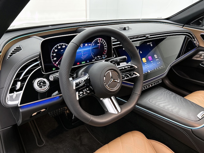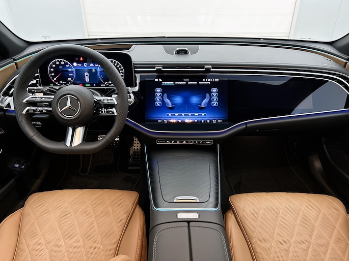 Mercedes staat symbool voor topkwaliteit, dat weten we al jaren. En dat geldt nu meer dan ooit. 'The best or nothing'. Het sportieve uiterlijk is meegeleverd in de vorm van de AMG Line Exterieur. Het gaat hier om een nieuwe auto, hij is nu direct leverbaar. De uitstekende prestaties van deze auto komen van de viercilinder motor en de automatische transmissie. Deze Mercedes-Benz E-klasse is voorzien van luchtvering, en dat is te merken aan de rimpelloze wegligging. Zit je goed? De stoelen zijn eenvoudig instelbaar dankzij de elektrische bediening met geheugen. Van binnen lijkt het allemaal uitermate ruim dankzij de vrije inval van daglicht via het elektrisch bediende glazen panoramadak. Een praktische extra is de elektrisch bedienbare achterklep die opent en sluit met een druk op de knop. Als je de stuurverwarming inschakelt, geniet jij van weldadige warmte voor jouw handen en vingers. De uitmonstering van deze auto wordt gecompleteerd door onder meer 20 inch lichtmetalen velgen, Full LED koplampen, AMG Line Exterieur, adaptief dempingsysteem, warmtewerend glas en in delen neerklapbare achterbank.