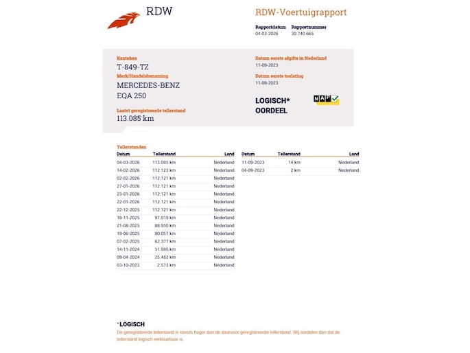 Kilometerstand gecontroleerd