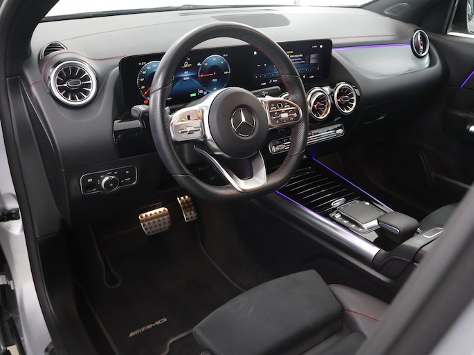 Kijk naar de geraffineerde lijnen. Verbaas u over de soepele aandrijftechniek. De elektrische Mercedes-Benz EQA trakteert u op een onvergelijkbare rijervaring. Met de combinatie van elektrische aandrijving en automatische transmissie manoeuvreert u soepel door het verkeer. De AMG-styling geeft dit model een elegante en opvallende uitstraling. Voorin is het 's winters genieten met de verwarmbare voorstoelen voor zowel bestuurder als bijrijder. De sportstoelen zorgen ervoor dat u goed en comfortabel zit, ook als het gas erop gaat. Een handige voorziening op deze auto is de elektrische achterklep die u op afstand kunt openen. In deze Mercedes-Benz profiteert u onder andere ook van: 19 inch lichtmetalen velgen, LED koplampen, AMG-styling, warmtewerend glas, in delen neerklapbare achterbank en verstelbare lendensteunen.