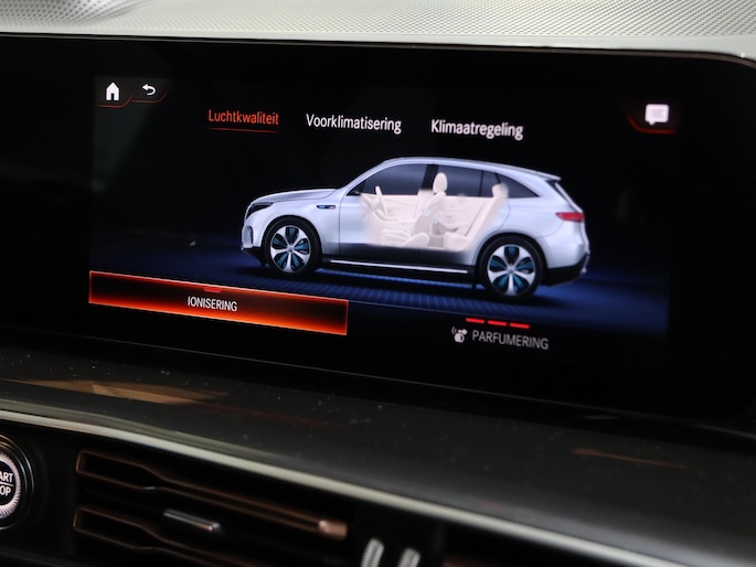 Duurzame mobiliteit is niet langer een ongrijpbare droom. Mercedes-Benz maakt het waar met de innovatieve elektrische EQC. De techniek van deze auto is radicaal anders dan u gewend bent. U rijdt zacht zoemend naar uw bestemming, de actieradius van de accu's is ruimschoots voldoende voor de meeste dagelijkse ritten. Houdt u van een sportieve, dynamische uitstraling? Dan komt de AMG-styling als geroepen. De auto heeft een opmerkelijk lage kilometerstand van slechts 34190 In de verwarmbare voorstoelen zitten is elke keer een welkom gevoel. De massagefunctie doet daar nog een schepje bovenop. Zit u goed? De stoelen zijn eenvoudig instelbaar dankzij de elektrische bediening met geheugen. Het panoramadak zorgt voor maximale lichtinval en kan worden geopend voor extra ventilatie. Een praktische extra is de elektrisch bedienbare achterklep die opent en sluit met een druk op de knop. Deze Mercedes-Benz EQC heeft een verwarmd stuurwiel. Nooit meer koude handen onderweg. De koplampen zijn voorzien van de allernieuwste lichttechnologie: matrix LED-verlichting. Bij de uitrusting van deze Mercedes-Benz horen onder meer 21 inch lichtmetalen velgen, AMG-styling, warmtewerend glas, treeplanken, LED-achterlichten en verstelbare lendensteunen.