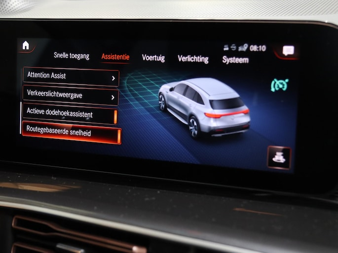 Pragmatisch en veilig als deze auto is, beschikt hij over diverse veiligheidssystemen. U rijdt ook veiliger omdat deze auto voor u de verkeersborden langs de weg kan lezen. De belangrijkste borden worden op uw instrumentarium geprojecteerd, zodat u ze niet kunt missen. Voorzien van het Lane-keeping systeem. Ofwel: blijf automatisch in je baan. Hoe goed u ook oplet in het verkeer, de dode hoek blijft een risico. Gelukkig is deze Mercedes-Benz EQC voorzien van actieve dodehoekdetectie. U bent mede dankzij head-up display, forward collision warning system, frontale botsbescherming en bandenspanningcontrolesysteem steeds veilig onderweg.