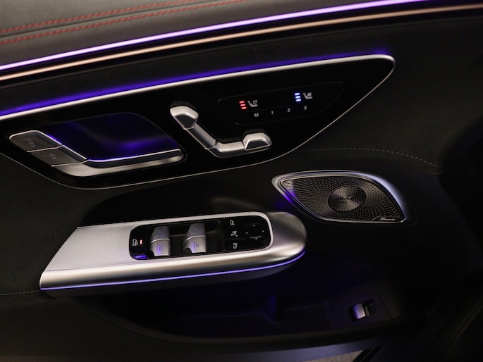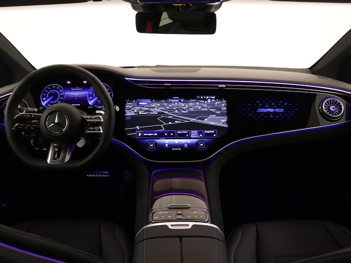 AMG 43 4MATIC 91 kWh | 476 PK | AMG Nightpakket | Premium Plus Pack | MBUX HYPERSCREEN | Verwarmd stuurwiel en voorruit | Burmester® soundsystem | Sierdelen AMG Carbon | Rijassistentiepakket plus | 360° camera | Nappaleder |