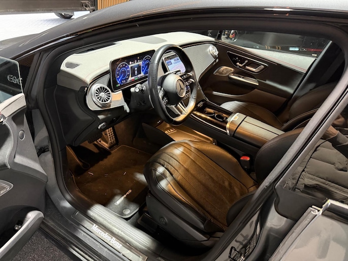 Technologische innovaties. Aantrekkelijke vormgeving. De Mercedes-Benz EQE verenigt het beste van twee werelden. Dankzij de automatische transmissie en elektrische aandrijving, navigeert u gemakkelijk door het verkeer. Met de AMG-styling trekt u op een positieve manier de aandacht. Stel u voor: zoevend over de snelweg terwijl het gulle daglicht het lederen interieur binnenvalt door het elektrisch bediende glazen panorama dak. En wat gemak betreft: daar zorgt onder andere de elektrisch bedienbare achterklep voor. Neem plaats op de comfortabele stoelen. Dankzij de elektrische bediening en het geheugen is het eenvoudig om hierin de beste zitpositie te vinden. Niet alleen u zelf geniet van de luchtvering; ook uw banden en remmen hebben veel minder te verduren. En de comfortstoelen zorgen voor volmaakte ontspanning. Ook 21 inch lichtmetalen velgen, Full LED koplampen, AMG-styling, geluidsisolerende ramen, neerklapbare achterbank en verstelbare lendensteunen zijn aan boord.
