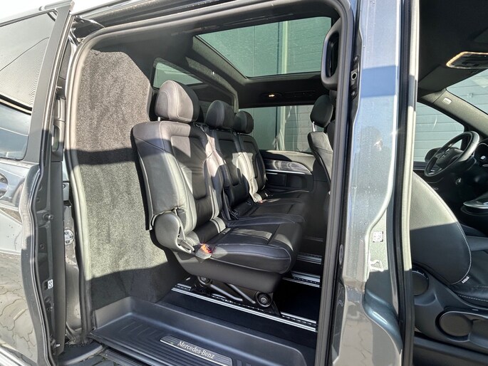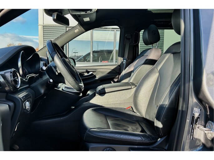 Bomvolle Mercedes EQV 300, de elektrische variant van de V-klasse, met slechts 44709km! Ideale bedrijfsauto met dubbelcabine (5 zitplaatsen) en een actieradius van circa 400km en een bus die in alle milieuzones wordt toegelaten! Deze schitterende EQV dubbel cabine is prachtig samengesteld in Seleniet grijs metallic met een zwart lederen interieur met 5 losse stoelen en is o.a. voorzien van Burmester HiFi, adaptieve LED koplampen en LED achterlichten, elektrische schuifdeuren links en rechts, elektrische achterklep, stoelverwarming, lederen multifunctioneel stuurwiel, panoramadak, elektrische ramen en spiegels, elektrisch inklapbare spiegels, navigatie met bluetooth en multimedia, Apple CarPlay en Android Auto, climate control, adaptieve cruise control, rijstrooksensor, dodehoeksensor, PDC voor en achter met 360 graden camera en parkeerassistent, 17" lichtmetalen velgen, privacy glass, dakrails, achterspoiler, enz. Volledig dealeronderhouden auto van de 2e eigenaar met 2 sleutels en complete historie! De prijs voor deze mooie grijs kenteken inclusief onderhoudsbeurt volgens schema, nieuwe APK en 3 maanden BOVAG garantie t.w.v. € 695,- is € 39.145,- ex. BTW.