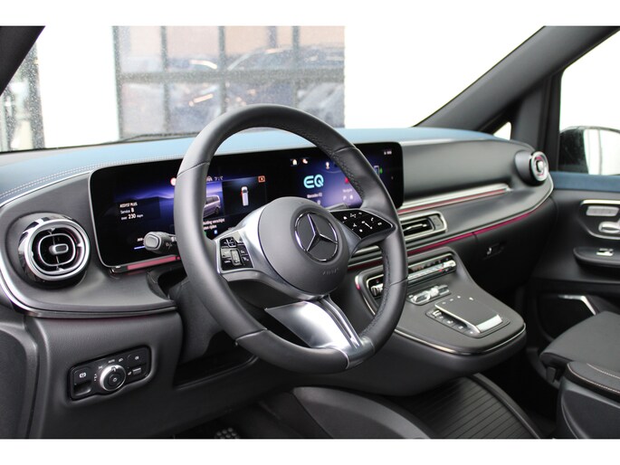 Een nieuw tijdperk breekt aan. Emissievrij rijden is niet langer toekomstmuziek met deze elektrische Mercedes-Benz EQV. Met de elektromotor zoeft u fluisterzacht over de weg. Drie letters veranderen deze Mercedes-Benz in een uitzonderlijke Mercedes-Benz. De AMG-styling staat voor individualiteit en sportiviteit. Hoewel de auto uit 2024 komt, heeft hij maar 3387 kilometer gereden. Een krachtige motor geeft deze auto zijn sportieve prestaties. De auto is voorzien van een mooie en comfortabele lederen bekleding. Dankzij de elektrische stoelbediening is het gemakkelijk om de optimale zitpositie te vinden. De bagageruimte is toegankelijk via een comfortverhogende elektrische achterklep. Xenonverlichting zorgt voor een heldere witblauwe lichtkleur en een scherp lichtbeeld. Passagiers stappen gemakkelijk in en uit door de schuifdeur met z'n ruime opening. Bij de uitrusting van deze auto horen onder meer 18 inch lichtmetalen velgen, LED koplampen, AMG-styling, warmtewerend glas, zwarte hemelbekleding en dakspoiler.