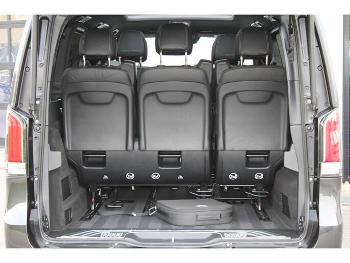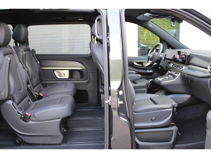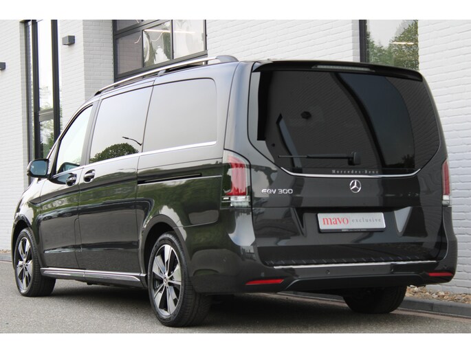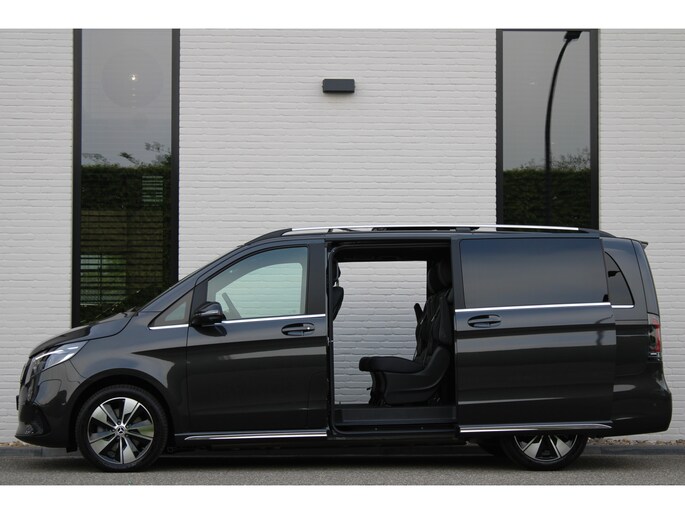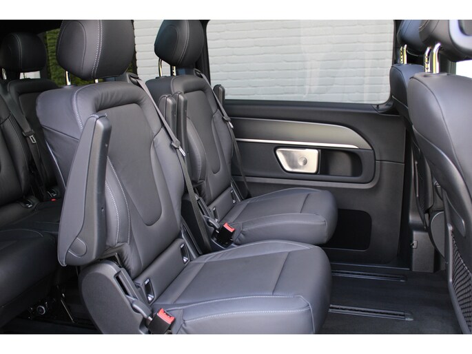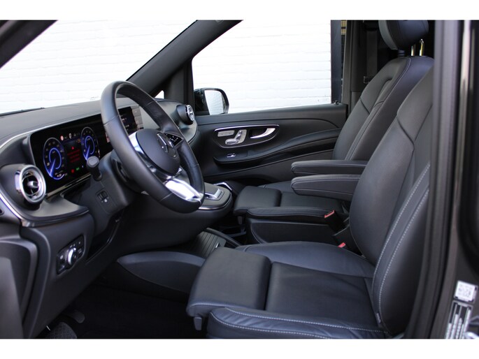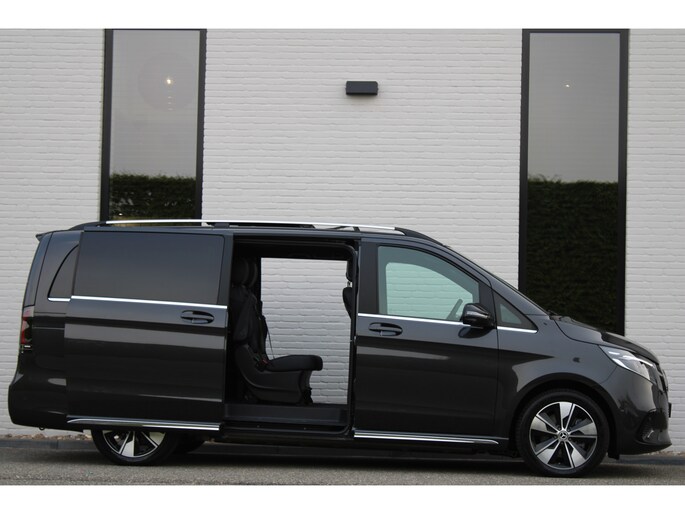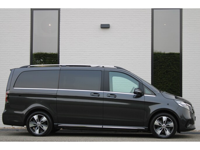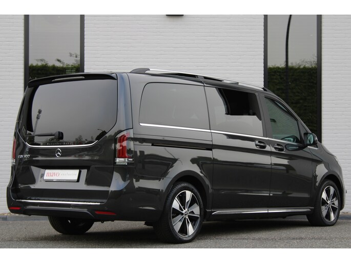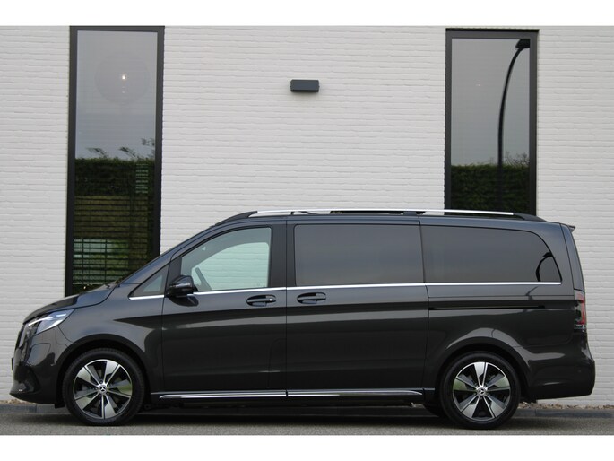 Hij biedt volop ruimte, deze Mercedes-Benz EQV, en dankzij zijn elektrische aandrijving is er ook plenty vermogen voor een dynamische rijstijl. Met zijn krachtige elektromotor biedt deze auto een uitzonderlijk rijgenot. Met de AMG-styling laat dit model zich van zijn meest dynamische kant zien. Een krachtige motor geeft deze auto zijn sportieve prestaties. En wat heeft deze auto nog meer in petto? Om te beginnen zien we het lederen interieur, dat een sfeer van luxe meebrengt. Maar als u gaat voor gemak, wordt u ook niet teleurgesteld. Kijk eens naar die elektrisch bedienbare achterklep! Neem plaats op de comfortabele stoelen. Dankzij de elektrische bediening en het geheugen is het eenvoudig om hierin de beste zitpositie te vinden. Overdag een weidse zichthoek en 's avonds het lichtspel in de binnenruimte: dat geeft het glazen panoramadak! Ook in winterse omstandigheden is rijden een plezier, niet in de laatste plaats dankzij het verwarmd stuurwiel. Xenonverlichting zorgt voor een krachtige en heldere lichtbundel. Achterportieren kunnen gemakkelijk beschadigd raken als ze bijvoorbeeld door de wind bij uitstappen openslaan. Dat zal niet gebeuren met de aanwezige schuifdeur achter. Tot de uitrusting behoren ook LED koplampen, AMG-styling, warmtewerend glas, zwarte hemelbekleding, dakspoiler en LED-achterlichten.