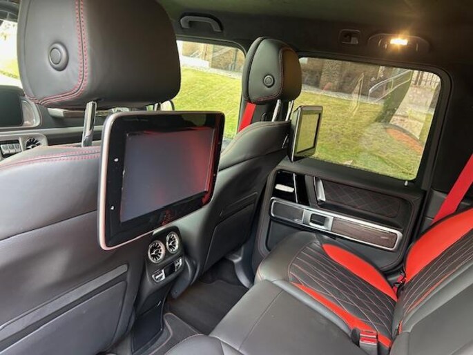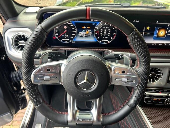 Een hoge mate van degelijkheid, uitstekende wegligging en veel comfort; het zijn unieke eigenschappen waarmee Duitse auto's zich onderscheiden. Het elegante exterieurdesign krijgt een sportieve impuls met het AMG-styling pakket. De automatische transmissie en de achtcilinder motor maken het autorijden snel en comfortabel. Boven uw hoofd schijnt de zon. Het licht valt binnen door het elektrisch bediende glazen panorama dak. En door het comfort van het lederen interieur geniet u van elke kilometer. Koude start? Niet met de verwarmbare voorstoelen! En allebei ook nog eens voorzien van massagefunctie tegen stramme rug en schouders. Zit u goed? De stoelen zijn eenvoudig instelbaar dankzij de elektrische bediening met geheugen. Deze Mercedes-Benz G-klasse heeft eigenlijk alles, zelfs een verwarmde achterbank. Tot de uitrusting behoren ook 22 inch lichtmetalen velgen, LED koplampen, AMG-styling, warmtewerend glas, in delen neerklapbare achterbank en treeplanken.
