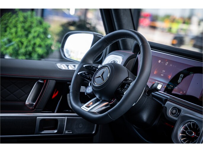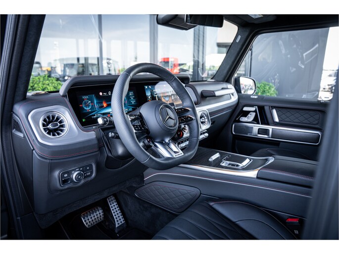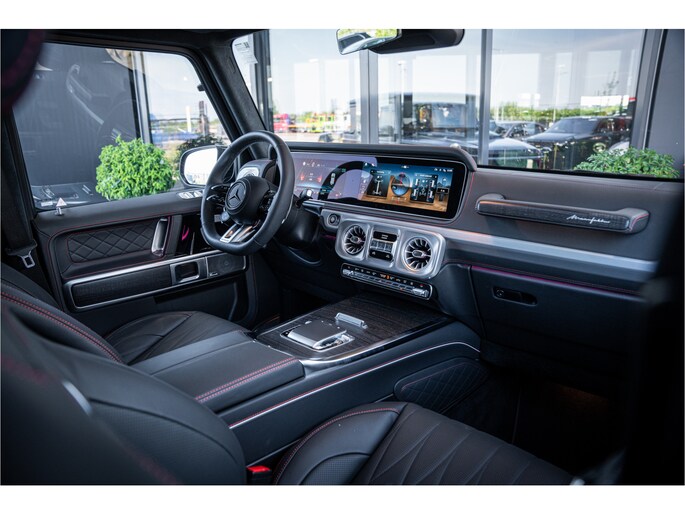 Alle technologie in de Mercedes-Benz G-klasse is er op gericht om uw rit veilig en gemakkelijk te laten verlopen. Dit mooie exemplaar komt uit 2024. Ten opzichte van het standaard model onderscheidt deze Mercedes-Benz zich met sportieve amg performance package. Op de teller van deze auto staat slechts 491 kilometer. Hij heeft een benzinemotor en een automatische transmissie. Voorzien van een lederen interieur: stijl en kwaliteit voor u en uw passagiers! Tijdens gure dagen is het prettig zitten in de verwarmbare voorstoelen, die bovendien zijn uitgerust met massagefunctie. Neem plaats op de comfortabele stoelen. Dankzij de elektrische bediening en het geheugen is het eenvoudig om hierin de beste zitpositie te vinden. Als u blij wordt van licht en ruimte dan zult u zeker genieten van het elektrisch bediende panoramadak. Ook is de auto voorzien van: 22 inch lichtmetalen velgen, LED koplampen, amg performance package, adaptief dempingsysteem, warmtewerend glas en instelbare schokdempers.