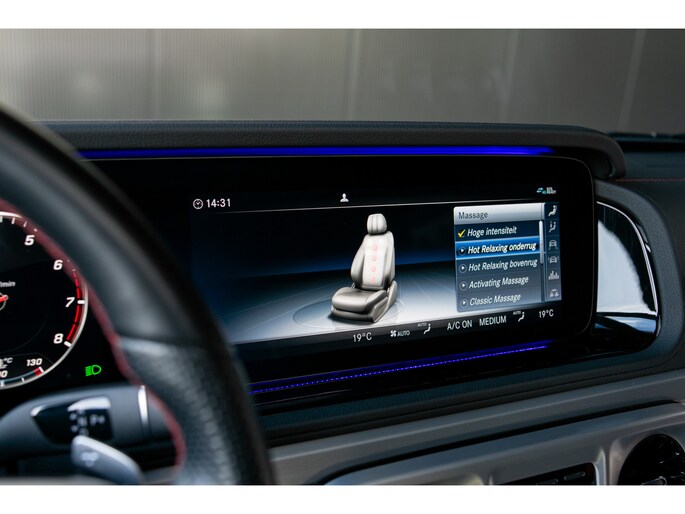 De G-Klasse straalt pure autoriteit uit met het AMG-stylingpakket en het stijlvolle Nightpakket, dat de auto voorziet van sportieve zwarte accenten. Binnenin heerst rust en luxe: geniet van het Burmester geluidssysteem, de verwarmde en geventileerde stoelen met massagefunctie en de standkachel die zorgt voor een aangenaam interieur, ongeacht het seizoen.