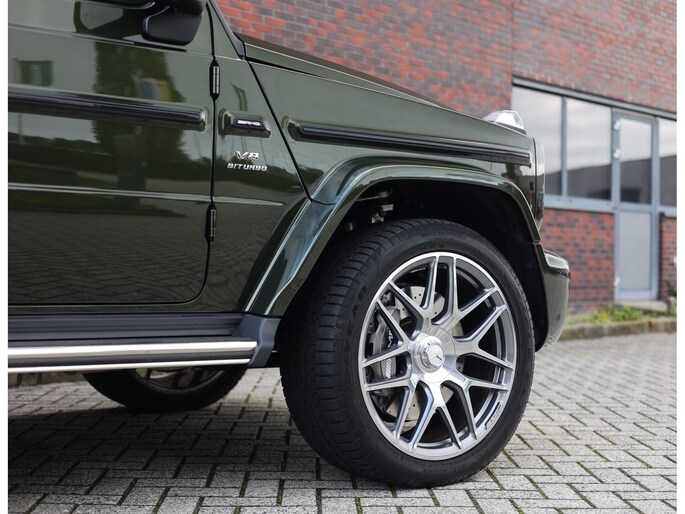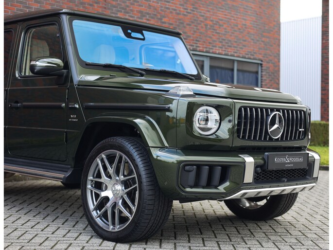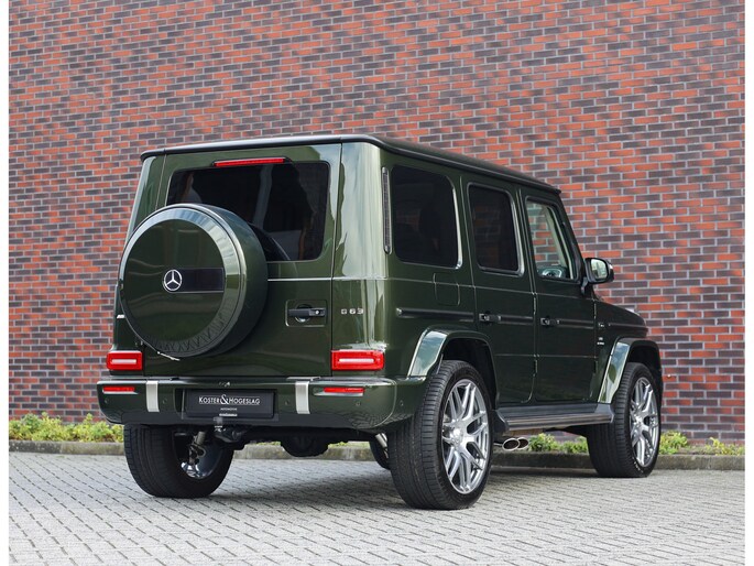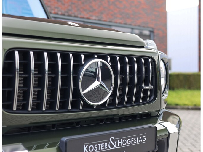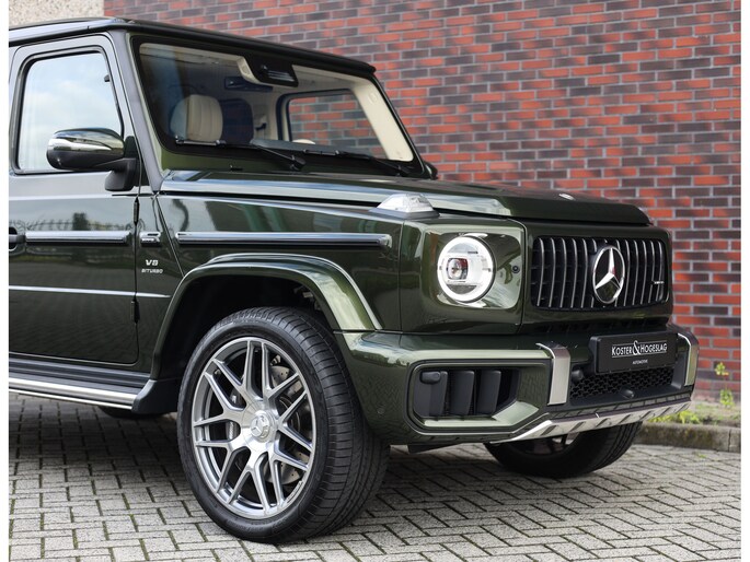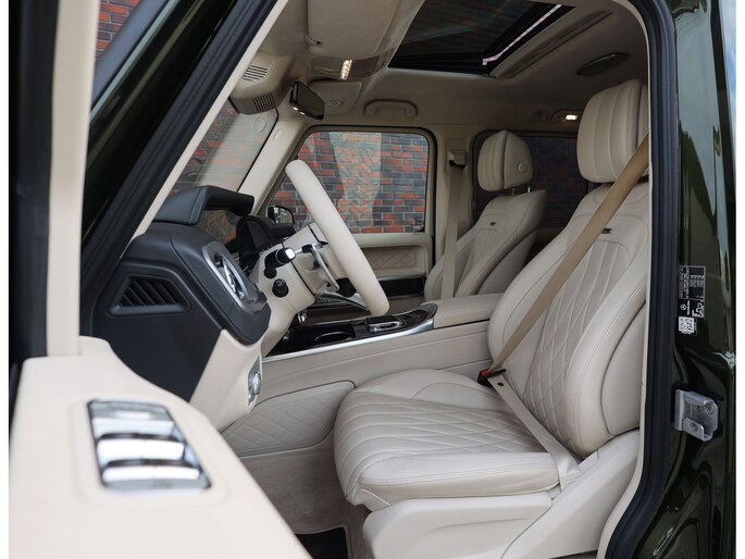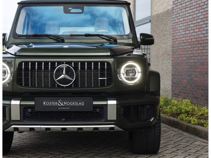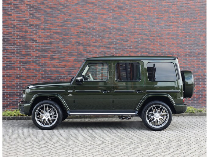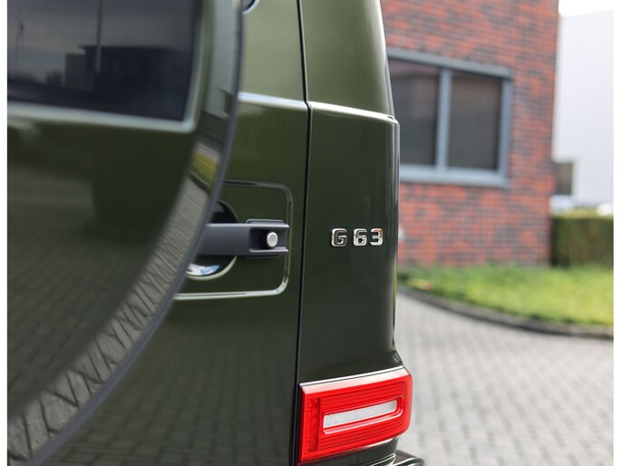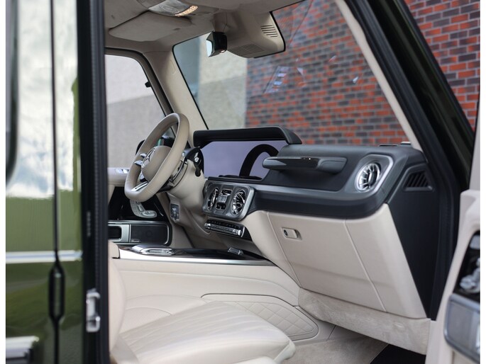 Laten we aan de buitenkant beginnen. In tegenstelling tot de vele zwarte en grijze G-Klasse’s is voor dit exemplaar de G Manufaktur kleur “Olive Metallic” uitgekozen. We zijn misschien bevooroordeeld, maar in onze ogen past deze kleur perfect op een G. Het laat de auto zeer stijlvol ogen en maakt de auto nóg exclusiever dan een zwarte lak.