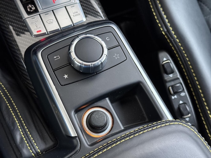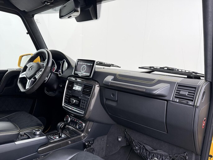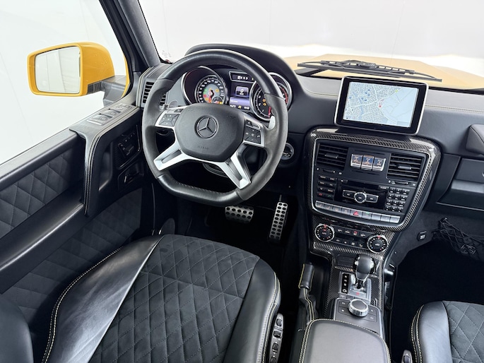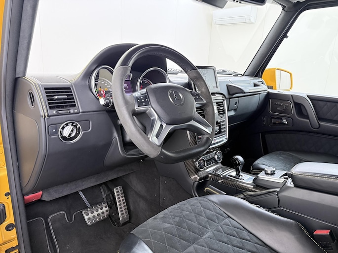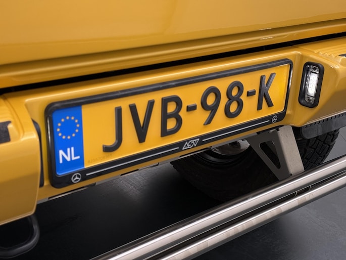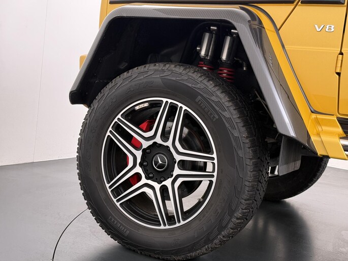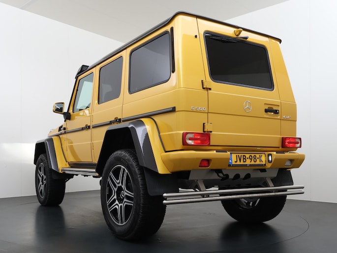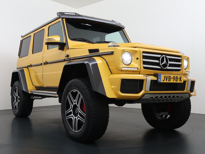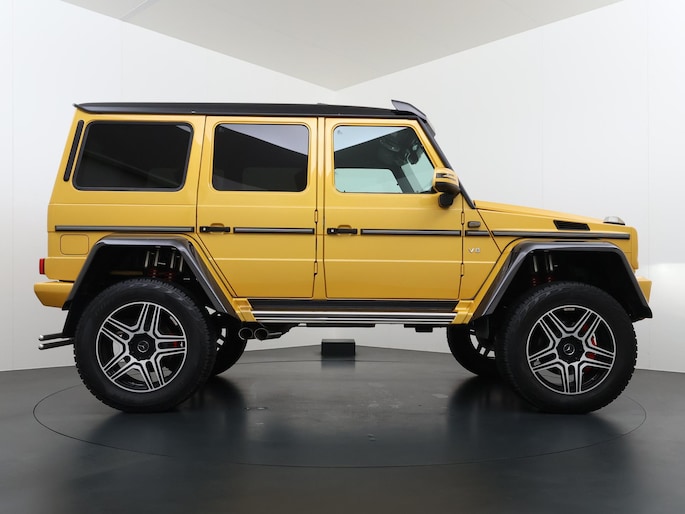 Dat de G 500 4×4² bijzonder is, is bij het eerste aanzicht meteen duidelijk. De G-Klasse 4×4² heeft grotere wielen met offroadbanden, assen met een grotere uitslag, bredere wielkasten vervaardigd uit carbonfiber, en een grotere spoorbreedte. Daarmee heeft de G-Klasse in deze exclusieve 4x4-uitvoering terreincapaciteiten die geen enkele andere productieauto kan leveren. Maar ook op het asfalt rijdt de G 500 4×4² beter dan je zou verwachten. De V8 met dubbele turbo levert meer dan 400 pk en daarmee is er altijd meer dan genoeg kracht beschikbaar. Dit exemplaar is uitgevoerd in Solarbeam Yellow. Een zeer exclusieve lak, die nieuw een meerprijs heeft van meer dan 20.000 euro. Het interieur is in stijl afgewerkt in een combinatie van zwart nappaleder en alcantara met gele contrasterende stiksels. De concept van de G 500 4×4² introduceerde Mercedes-Benz als 'Extreme-G'. En dat is precies wat de productieversie ook is. Extreem in alle opzichten.