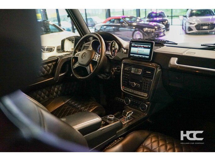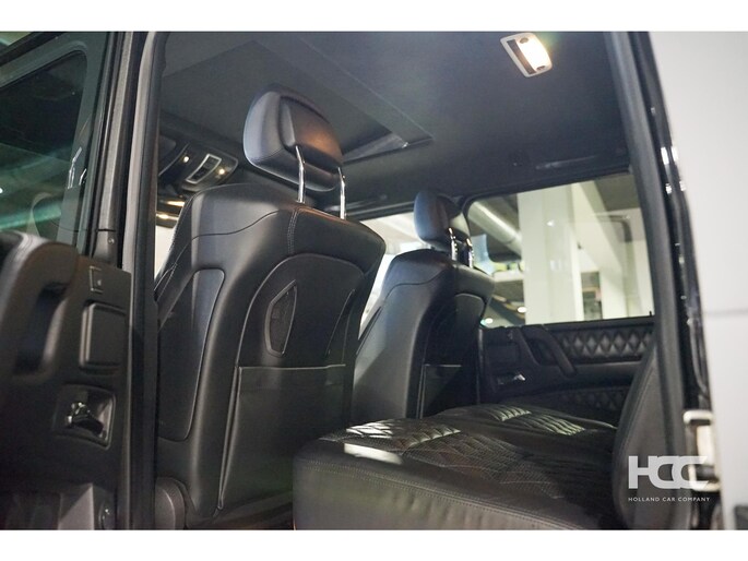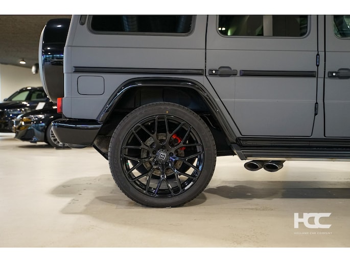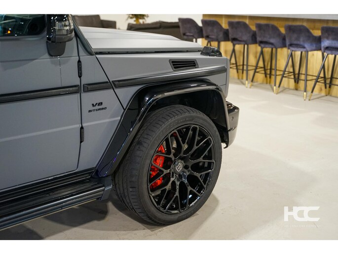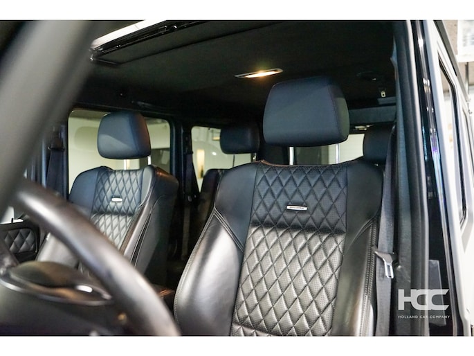 De auto is zwart metallic met zwart lederen Designo interieur. Momenteel is de G klasse voorzien van een mat grijze wrap.