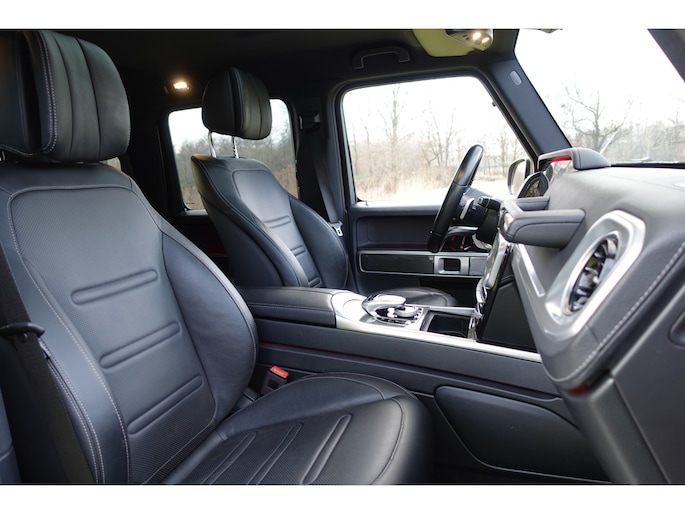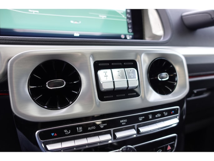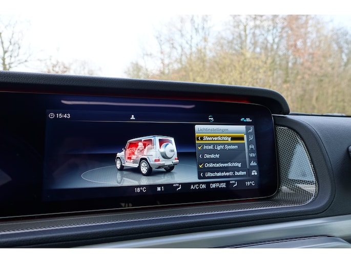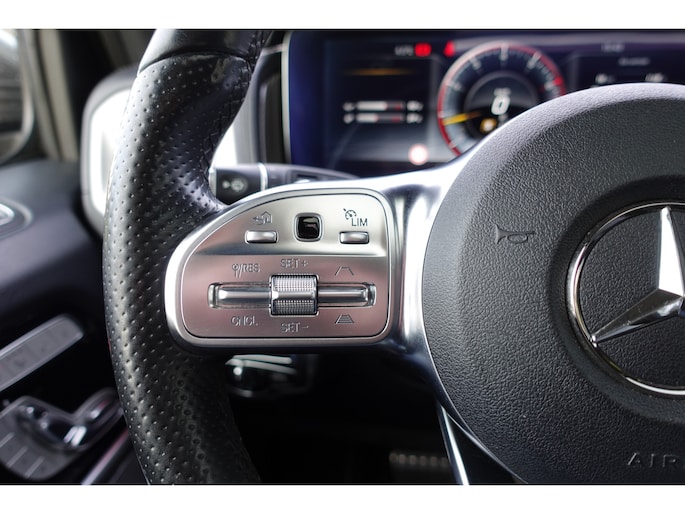 In de Mercedes-Benz G-klasse heeft uw veiligheid en die van uw omgeving prioriteit. In het instrumentarium ziet u tijdens de rit ook de belangrijkste verkeersborden aangegeven, die de auto automatisch voor u leest. Keep your lane? Het Lane-keeping systeem zorgt er automatisch voor. Het forward collision warning-systeem berekent via een sensor de afstand tot het verkeer vóór u en komt in actie als er gevaar bestaat van een botsing. Dankzij veiligheidsvoorzieningen als dodehoekdetectie, hill hold functie, vermoeidheidsherkenning en autonoom remsysteem, bent u steeds veilig onderweg.