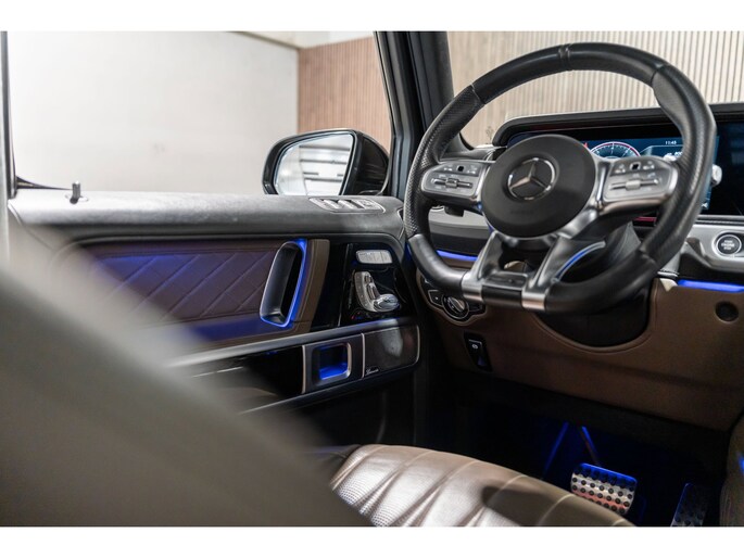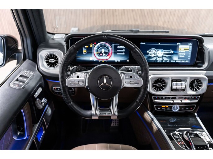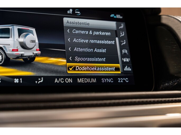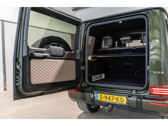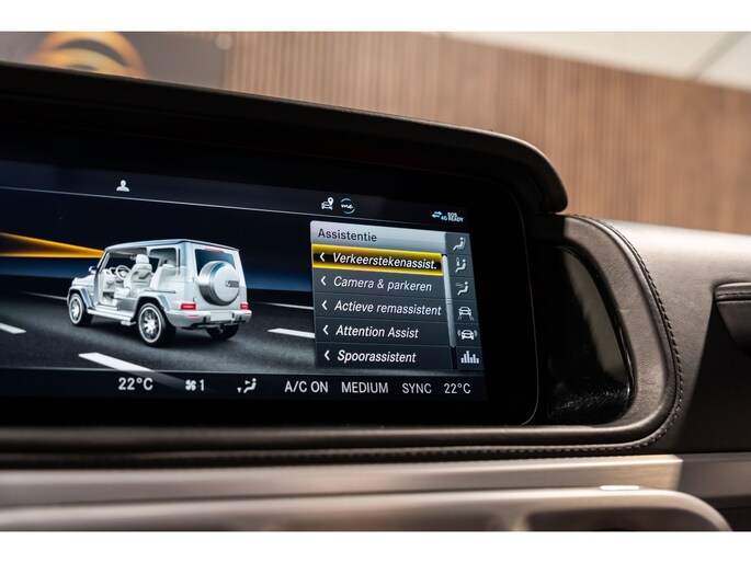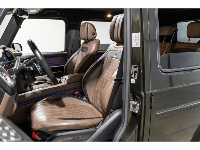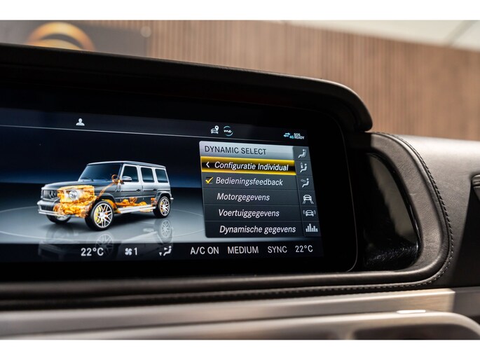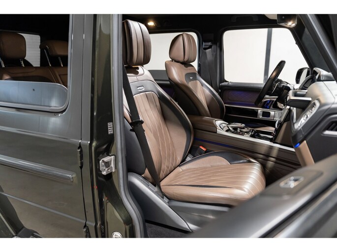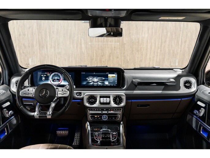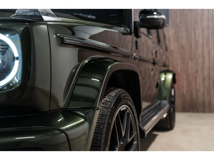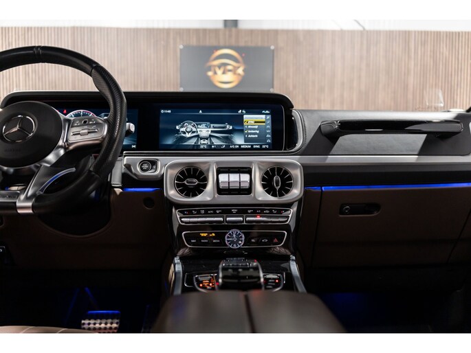 Dit is niet zomaar een Mercedes-Benz G-klasse. De hoge prestaties van de motor, het strak afgestelde onderstel en de uitgekiende verhoudingen van de transmissie staan garant voor bergen rijplezier. Als ook de uitstraling een beetje pittig mag, komt de AMG-styling mooi van pas. De automatische transmissie en de achtcilinder motor maken het autorijden snel en comfortabel. De auto is voorzien van een mooie en comfortabele lederen bekleding. Lang onderweg zijn kan een behoorlijke uitdaging zijn voor rug en schouders. Daarom zijn de verwarmbare voorstoelen voorzien van een weldadige massagefunctie. Zit u goed? De stoelen zijn eenvoudig instelbaar dankzij de elektrische bediening met geheugen. Licht, luxe en gemak komen samen in de vorm van het elektrische bediende glazen panoramadak. Deze Mercedes-Benz G-klasse is niet zuinig met comfort. Wat dacht u van een verwarmde achterbank? Ook 22 inch lichtmetalen velgen, LED koplampen, AMG-styling, warmtewerend glas, in delen neerklapbare achterbank en treeplanken zijn aan boord.