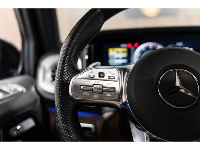 Voor het overzicht tijdens iedere rit is deze Mercedes-Benz G-klasse voorzien van een gemakkelijk afleesbaar digitaal dashboard. Het gebruik van de 360 graden camera op deze auto zorgt voor een groter gezichtsveld en helpt de dode hoeken te elimineren. Adaptive cruise control is veilig en comfortabel. De snelheidsregelaar houdt automatisch afstand tot het voertuig dat voor u rijdt. De auto is voorzien van een trekhaak en is een uitstekende caravantrekker. U weet altijd hoe de auto eraan toe is dankzij Connected Services. Ook handig voor de garage en de wegenwacht. Even de app uitlezen en klaar! De Mercedes-Benz is standaard voorzien van: dashboard met spraakbediening, premium audiosysteem, navigatiesysteem met harde schijf, achteropkomend verkeer waarschuwing, automatische airconditioning en sportstuur met schakelpaddels.