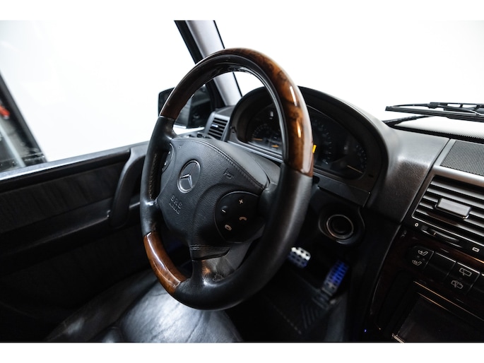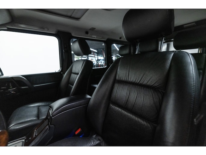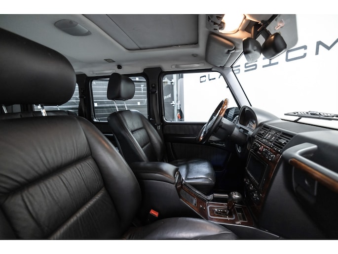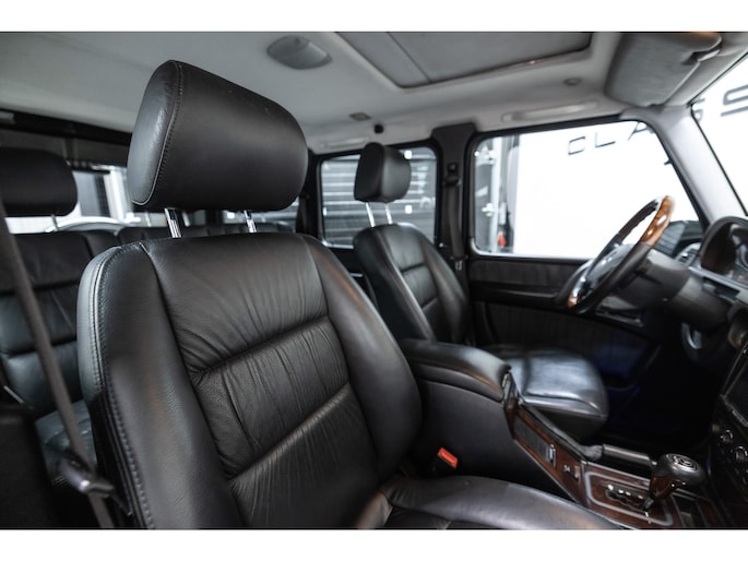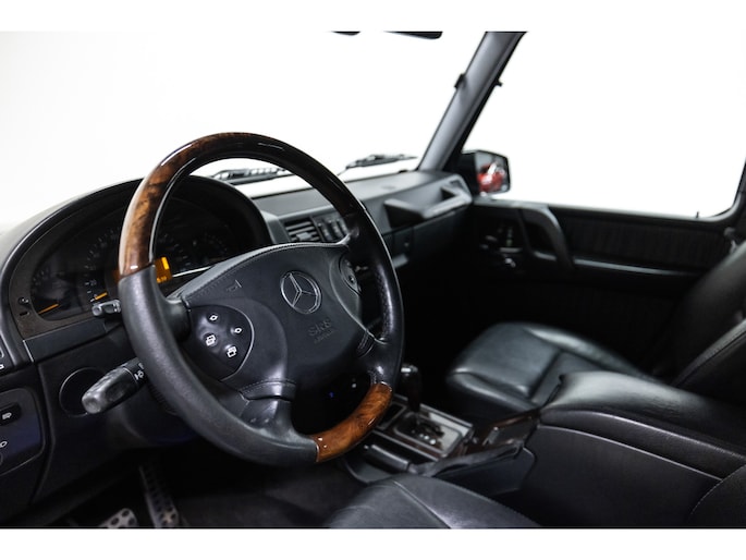 Originele Mercedes-Benz G-klasse 500 met G63 AMG Pakket uit 2003 te koop aangeboden. Het zwart kleurig lakwerk verkeert in een nette staat. Het origineel zwart lederen interieur verkeert eveneens in een nettestaat. De Mercedes G500 met G63 AMG Pakket is geheel roestvrij en is voorzien van vrijwel alle mogelijke opties af fabriek. Deze Mercedes-Benz G-klasse 500 met G63 AMG Pakket is zeer goed onderhouden en komt met haar originele service boekjes. De Mercedes G500 met G63 AMG Pakket is Bijtellingsvriendelijk (fiscale waarde € 22.000,-!) en de 21% BTW is verrekenbaar voor bedrijven!