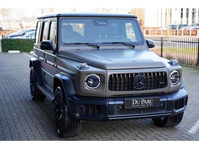 Een uitzonderlijk luxueus uitgevoerde Mercedes-AMG G 63 (2024) – afkomstig van de eerste eigenaar, in de exclusieve kleur Dunkeloliv Magno, met premium Nappa/Semianiline Leder Schwarz/Antraciet en als extra optie uitgerust met de exclusieve 23 inch Brabus Monoblock Y “Black Platinum” velgen.