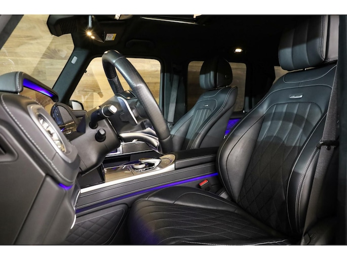 **Deze Mercedes G63 AMG is rijkelijk uitgerust met alle opties die je maar kunt bedenken. Zo heeft de auto onder andere: Vol lederen Interieur, Ambienteverlichting, Superior interieur, Achteruitrijcamera, 360-Camerasysteem, Stoelverwarming voor,Stoelventilatie voor, Elektrisch verstelbare stoelen met geheugen, Elektrisch schuif/kanteldak, Performance pakket, Massagestoelen, Burmester Surround sound, Climate control voor & achter, 22-Inch licht metalen AMG Sportvelgen, Alcantara hemelbekleding, Adaptieve Cruise control, Parkeersensoren voor & achter, Full map navigatie, DAB ontvanger, Groot multimedia scherm, Privacy glas, Apple carplay, Bluetooth, Dodehoekdetectie, Keyless entry & start, Lane Assist, Adaptief onderstel, Sportuitlaat, AMG Performance sportstuurwiel, Stuurwielverwarming, Trekhaak, Carbon interieur, etc.