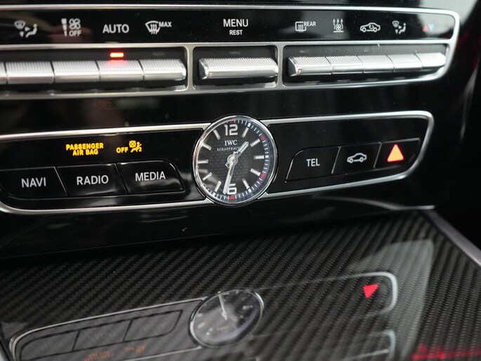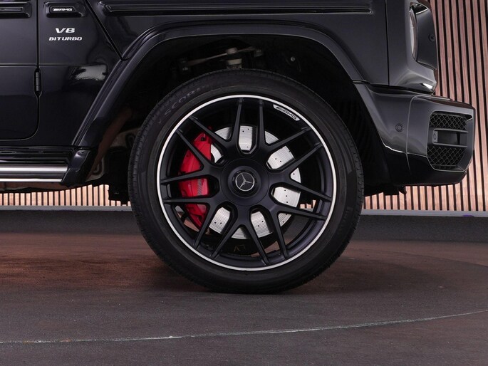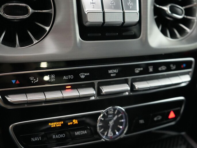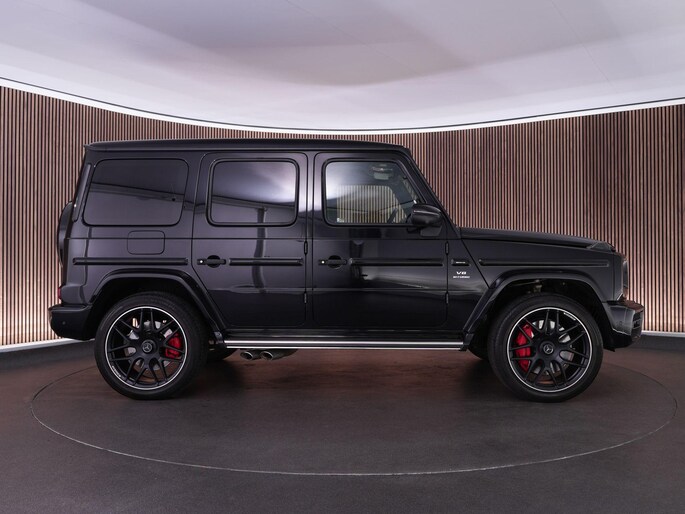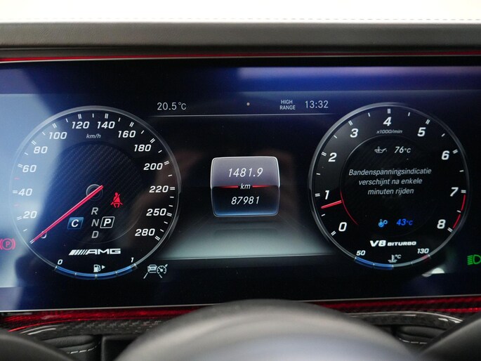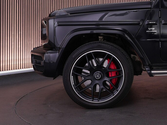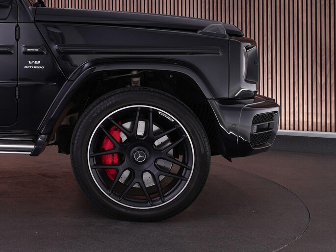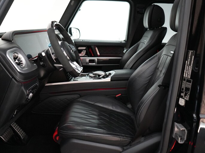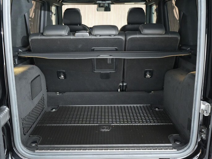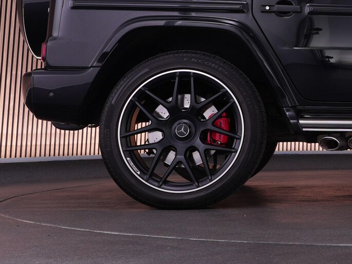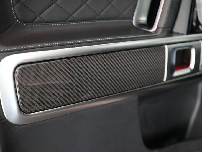 Deze G63 is ook gewoon goed uitgevoerd. Volledig nappaleder interieur, Burmester soundsysteem, panoramadak, ambient lighting en een digitaal display. Stoelcomfortpakket, verwarmd stuur, alles zit erop wat je dagelijks gebruikt.