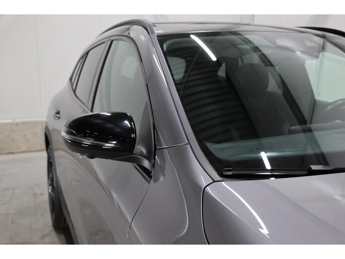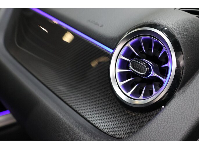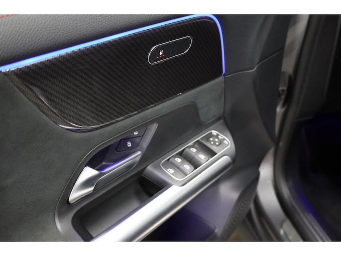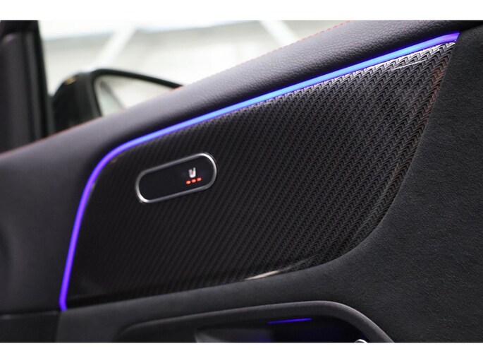 Uitgevoerd in Mountaingrau Metallic met het Night Pakket: zwarte accenten, getinte ramen, 19” AMG-velgen en verlaagde carrosserie. Het panoramisch dak en LED-verlichting versterken de sportieve premiumlook.