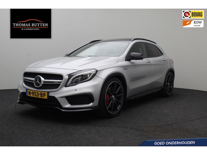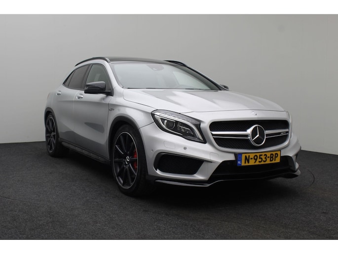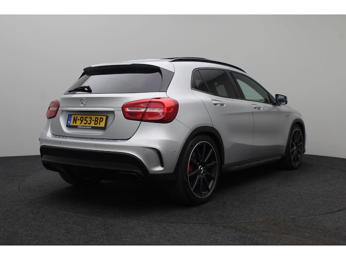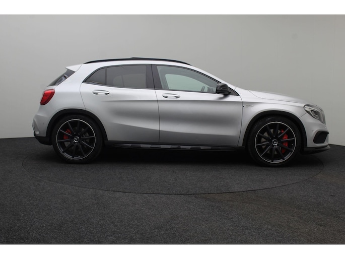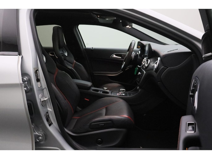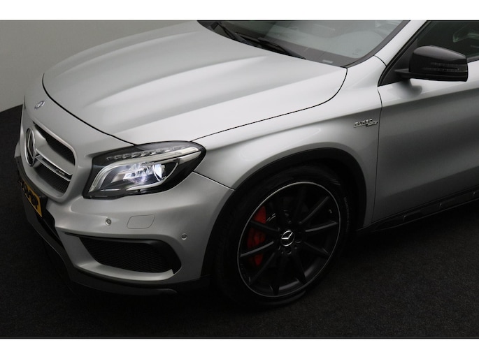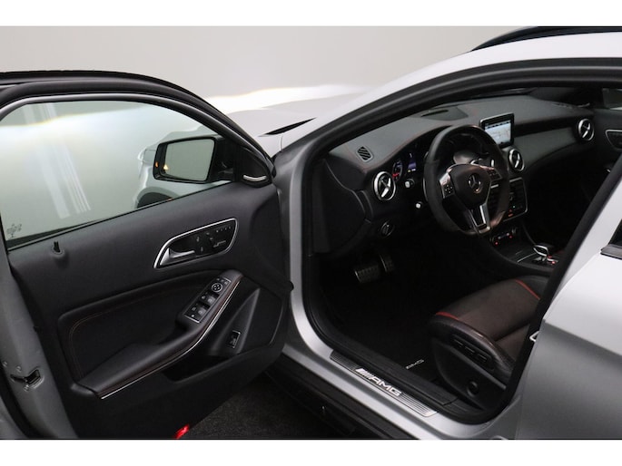 Dynamische styling, zorgvuldig afgewerkt met fraaie materialen en ontworpen met oog voor detail. De Mercedes-Benz GLA-klasse is van binnen en van buiten een toonbeeld van Duits design. De AMG-styling accentueert het sportieve karakter van deze Mercedes-Benz. Trap het gaspedaal in en voel de geweldige acceleratie van de viercilinder benzinemotor van deze sportwagen. De ruime lichtinval door het elektrisch bediende glazen panorama dak zorgt voor een heerlijk ruim gevoel. Met één klik te openen voor frisse lucht en een mild windje in de auto. Dat is gemak en plezier! Overigens is het happy-klik gevoel ook aanwezig bij de elektrisch bedienbare achterklep. Dankzij de elektrische stoelbediening is het gemakkelijk om de optimale zitpositie te vinden. In het donker zorgt de xenonverlichting voor een goed zicht op de weg. Bij de zeer complete uitrusting van deze auto behoren ook 20 inch lichtmetalen velgen, AMG-styling, sportonderstel, warmtewerend glas, in delen neerklapbare achterbank en verstelbare lendensteunen.