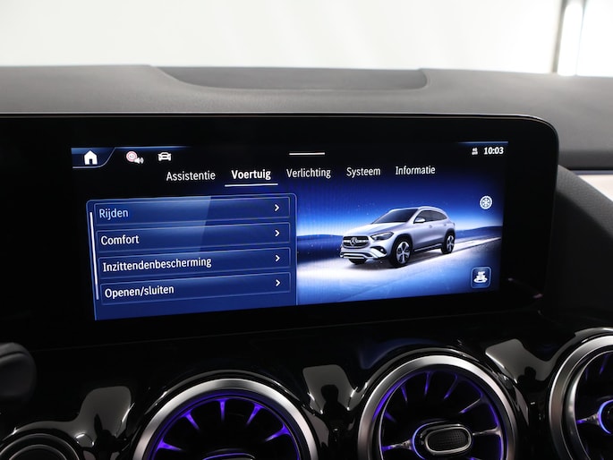 U zult verrukt zijn van de digitale wereld van mobiliteit; het digitale dashboard projecteert alles wat u nodig heeft om uw rit aangenaam en veilig te maken. De achteruitrijcamera vergemakkelijkt achteruit inparkeren. U ziet duidelijk wat er achter de auto gebeurt. Vanaf elke plek contact maken met deze auto: dat kan met behulp van remote services, die u simpel activeert met uw smartphone. U kunt tijdens de rit uw ogen steeds op de weg houden, want het audiosysteem (met DAB!) en het navigatiesysteem met harde schijf kunt u bedienen vanaf het stuur of met spraak. Zoals van een eigentijdse auto verwacht mag worden, is deze Mercedes-Benz GLA-klasse voorzien van een draadloze oplaadmogelijkheid voor telefoons. Met electronic climate control, sportstuur met schakelpaddels, regensensor, cruise control, keyless entry en automatisch dimmende buitenspiegels is deze auto helemaal compleet.