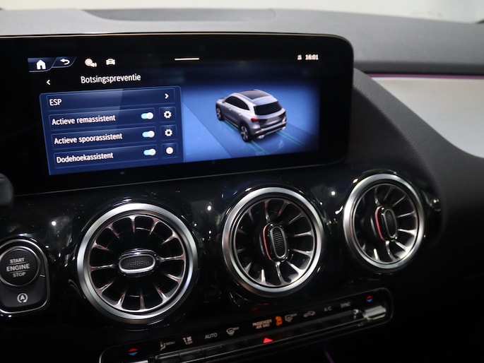 In de Mercedes-Benz GLA 180 Business Solution AMG heeft uw veiligheid en die van uw omgeving prioriteit. Hou de weg in het vizier! De head-up display zorgt dat u de dashboardinfo in beeld geprojecteerd krijgt. Het Lane-keeping systeem let constant op en waarschuwt of corrigeert als u onoplettend over de lijnen van de rijstrook gaat. Deze auto waarschuwt de bestuurder als die tekenen van vermoeidheid vertoont en kan zo ernstige ongelukken voorkomen. Ook helpen het dodehoekdetectie, autonoom remsysteem en bandenspanningcontrolesysteem, uw rit tot een veilige rit te maken.