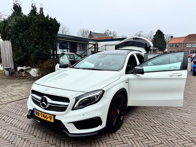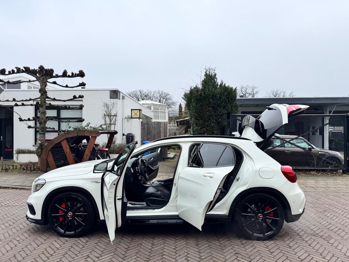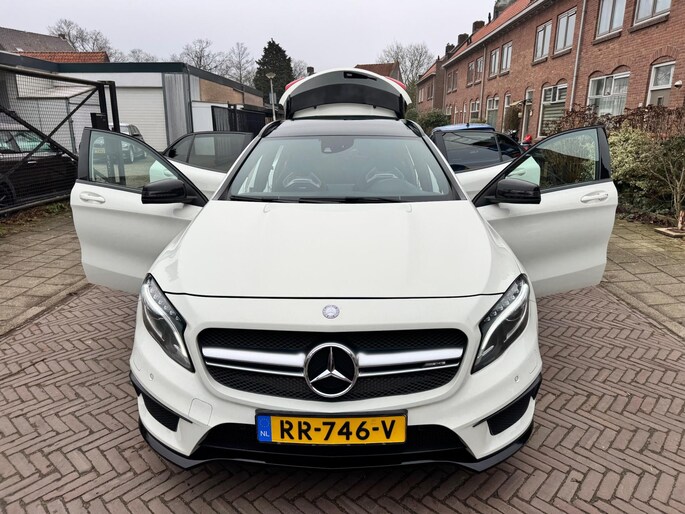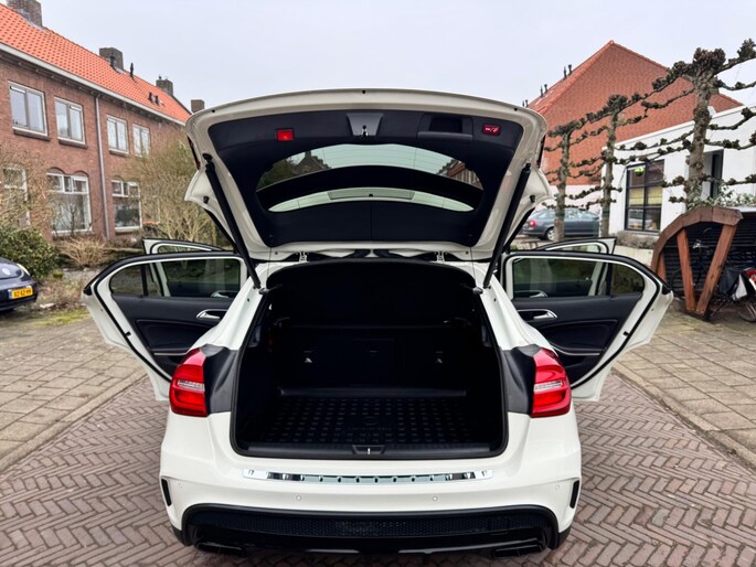 Kippenvel! Deze Mercedes-Benz GLA-klasse maakt iedere rit opwindend. Fan van AMG-styling? Dat komt mooi uit, want deze is lekker sportief uitgevoerd. Deze auto beschikt over meer dan genoeg motorvermogen. Neem plaats op de comfortabele stoelen. Dankzij de elektrische bediening en het geheugen is het eenvoudig om hierin de beste zitpositie te vinden. Dat noemen ze nou een ruimtelijk effect: het elektrisch bediende glazen panoramadak. De bagageruimte is toegankelijk via een comfortverhogende elektrische achterklep. Xenonverlichting zorgt voor een heldere witblauwe lichtkleur en een scherp lichtbeeld. Bij de zeer complete uitrusting van deze auto behoren ook 20 inch lichtmetalen velgen, AMG-styling, sportonderstel, warmtewerend glas, in delen neerklapbare achterbank en verstelbare lendensteunen.
