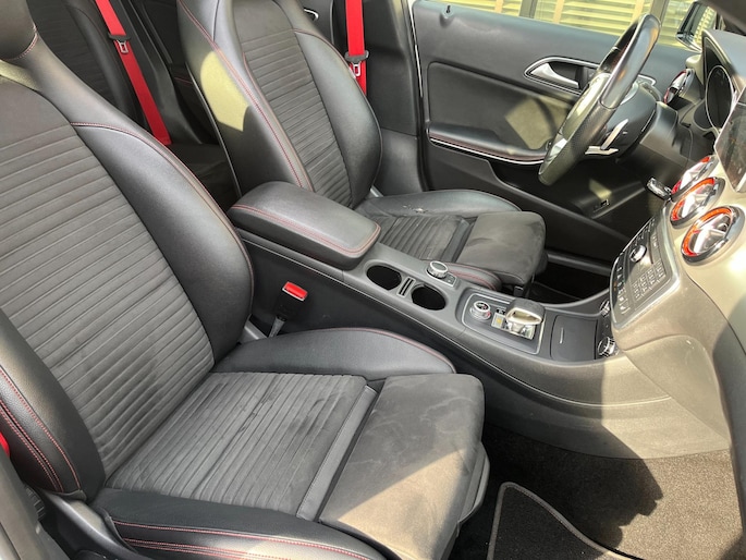 Ook het interieur biedt het comfort dat u van een Mercedes mag verwachten. De kunstlederen bekleding, stijlvolle aluminium afwerking en verwarmbare voorstoelen maken elke rit een genot. Met het geavanceerde navigatiesysteem Full Map met hard disk en smartphone-integratie navigeert u eenvoudig en efficiënt. Ondertussen biedt het hoogwaardige audiosysteem, inclusief DAB-radio, een uitstekende geluidskwaliteit voor al uw favoriete muziek. Extra functionaliteiten zoals adaptieve cruise control, parkeersensoren en een achteruitrijcamera zorgen voor een moeiteloze rijervaring. Dankzij keyless entry sluit en opent u de auto bovendien met het grootste gemak.