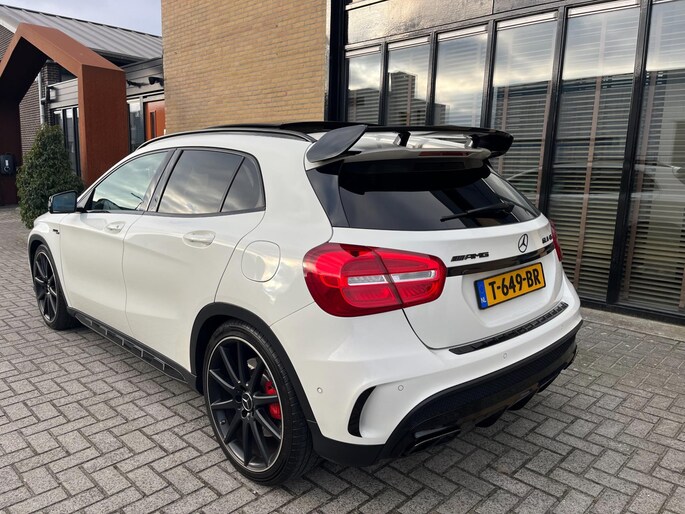 Met trots presenteren wij deze krachtige Mercedes-Benz GLA AMG 45 4MATIC! Een SUV met een sportieve uitstraling en een indrukwekkende rijervaring dankzij de ongekende 381 PK en een topsnelheid van 250 km/h. Het exterieur is uitgevoerd in een glanzend witte kleur met luxe 19-inch lichtmetalen AMG-velgen die de dynamische stijl van de auto perfect aanvullen. Het elektrisch bedienbare panoramadak en de AMG-styling benadrukken de premium sportieve klasse van deze SUV.